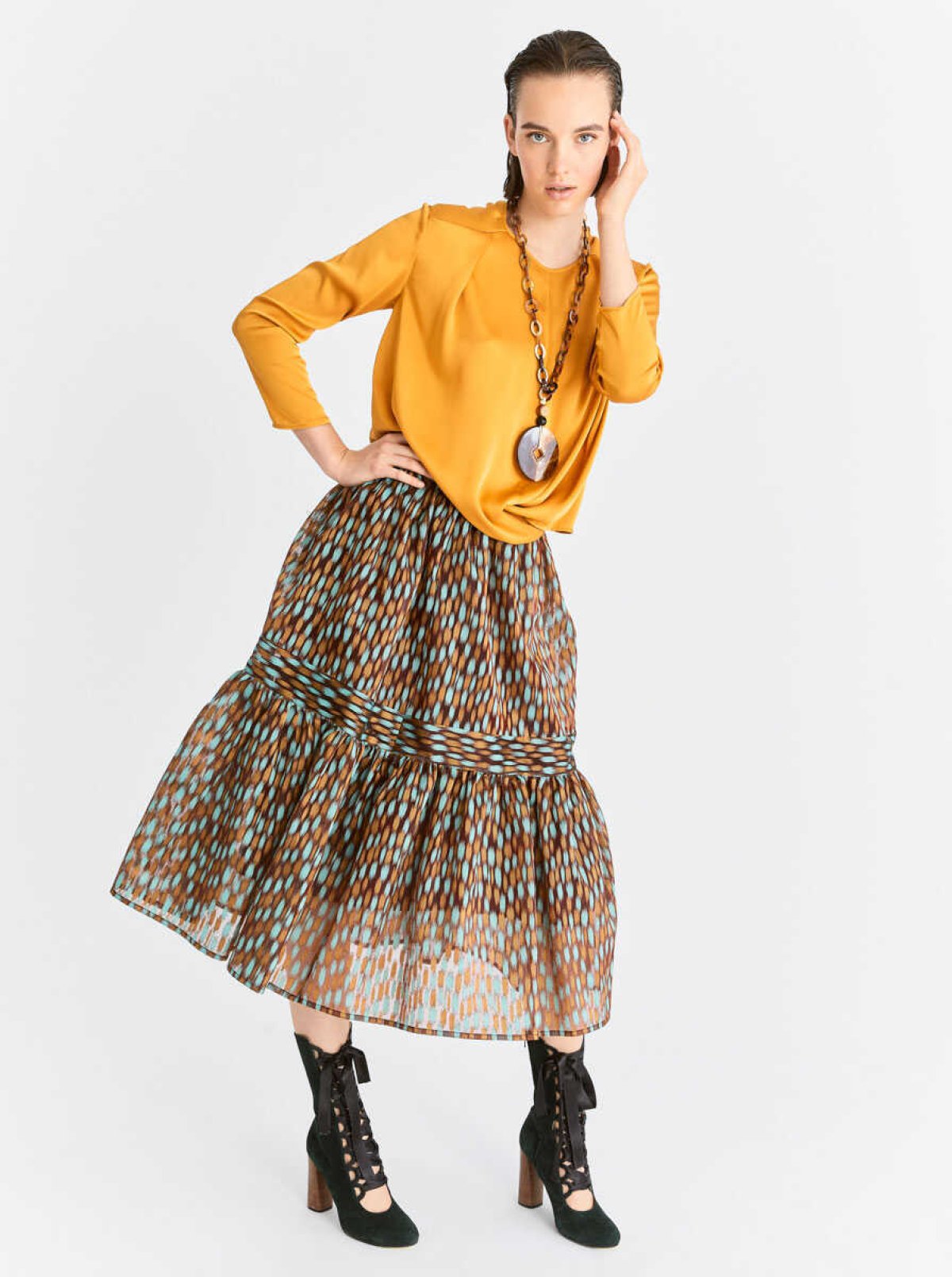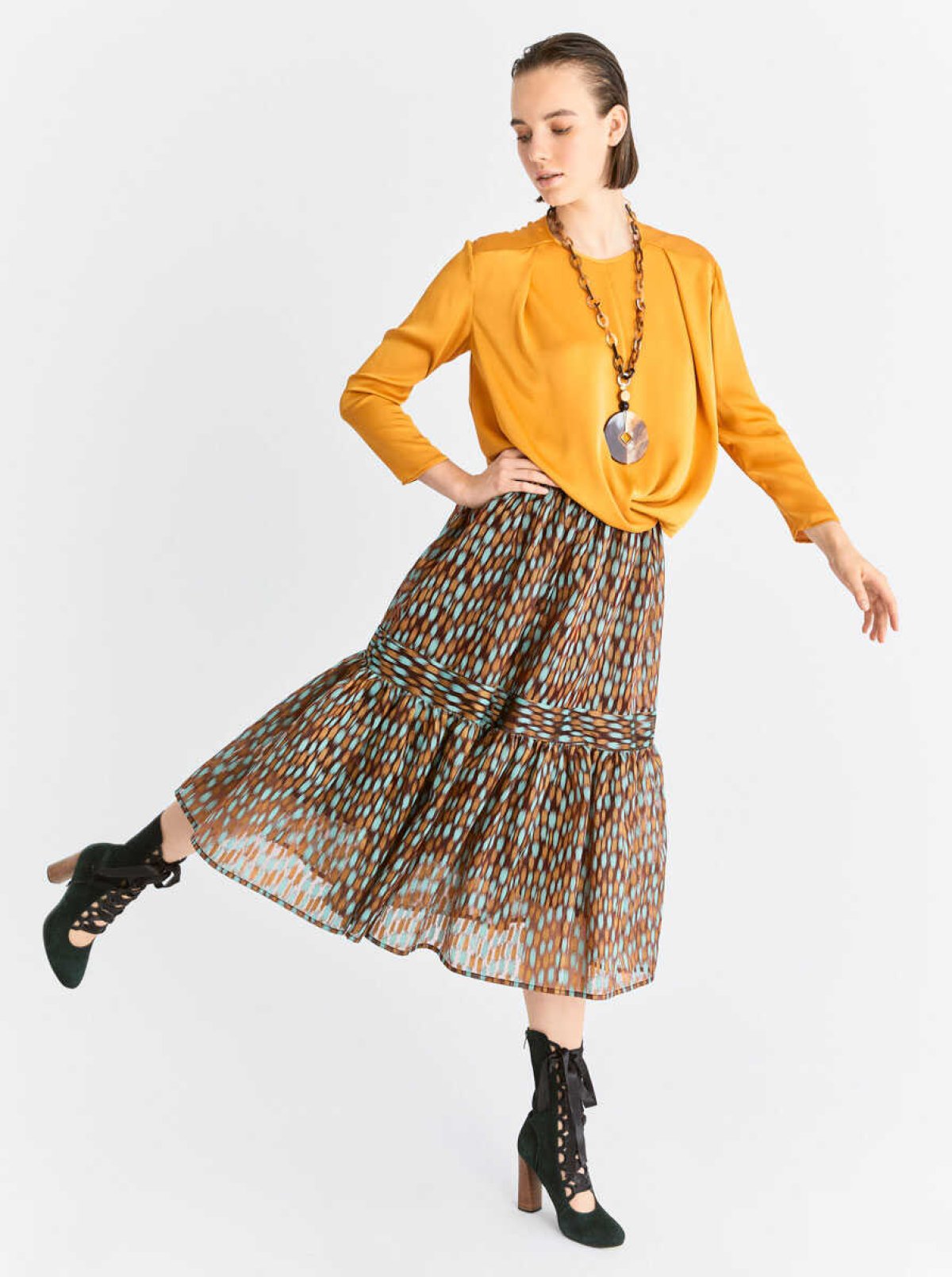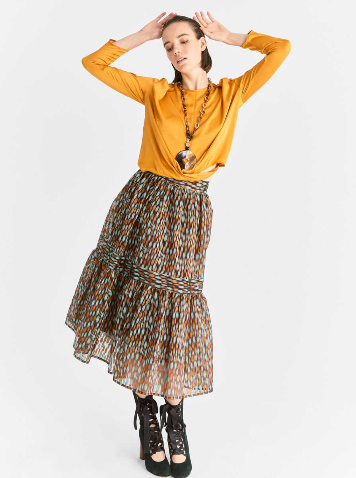 Pileli Maksi Boy Şifon Empirme Etek Standart Renk