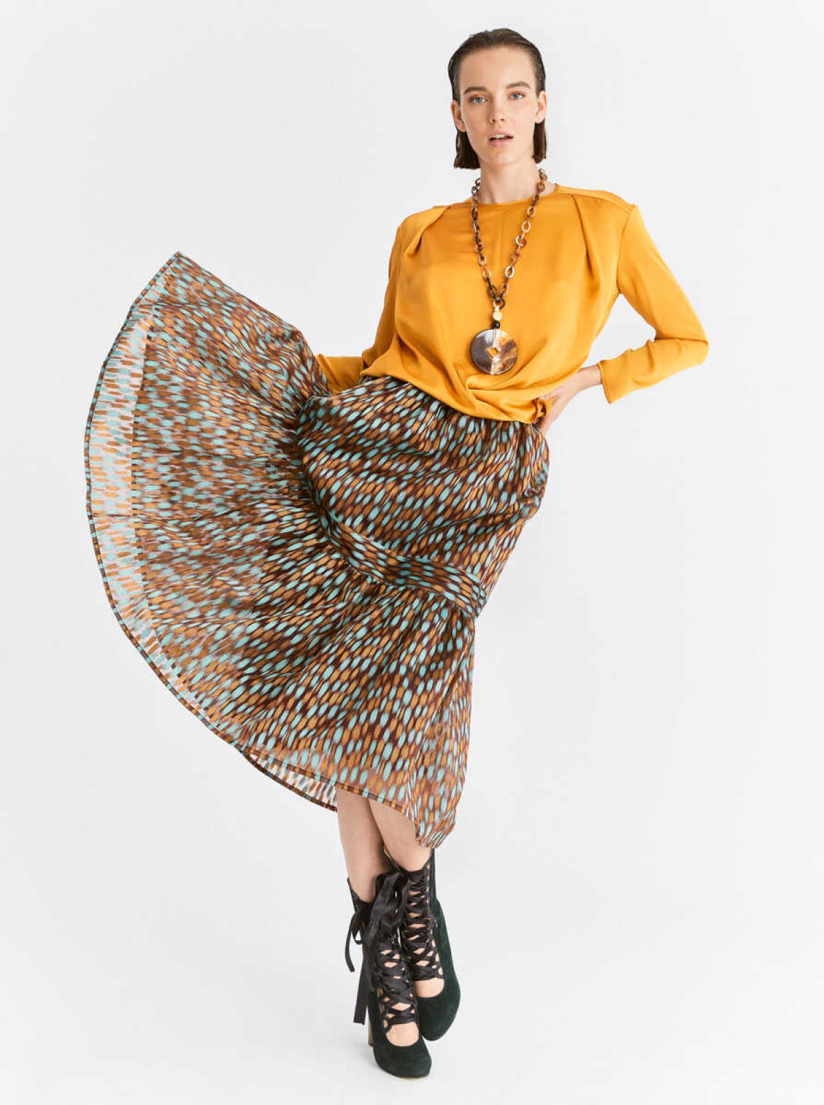 Leopar Desenli Pileli Uzun Etek Standart Renk