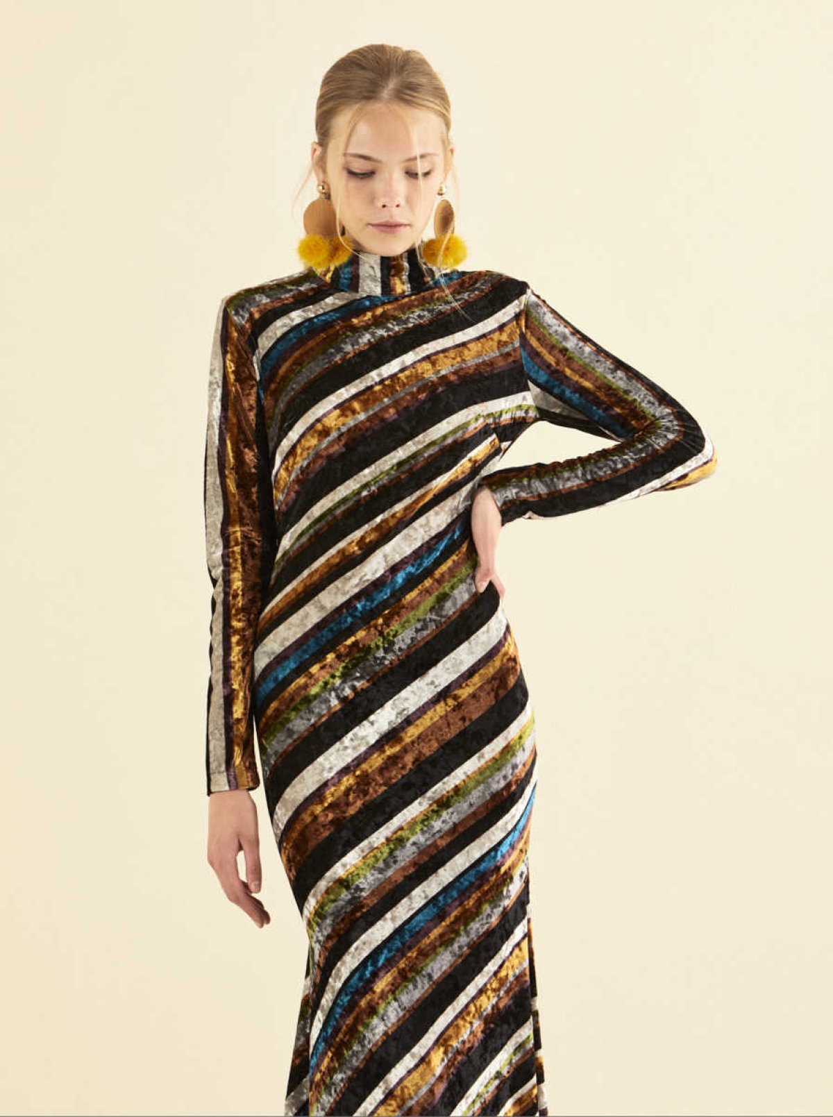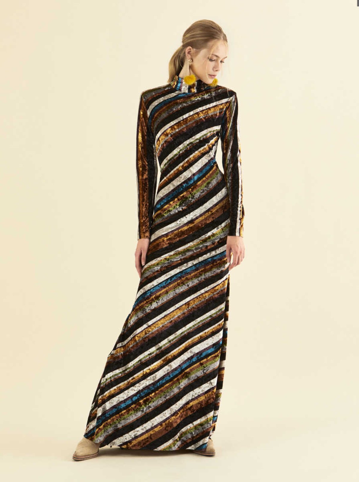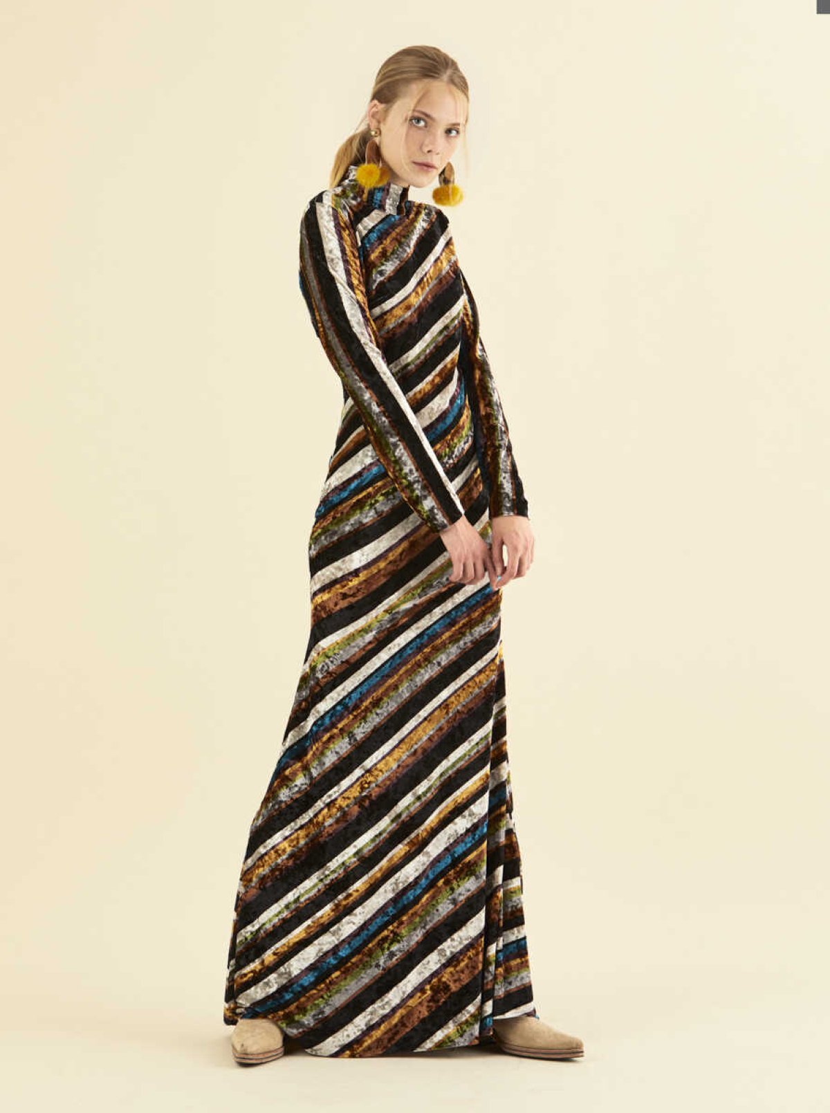 Desenli Uzun Renkli Abiye Elbise Standart Renk
