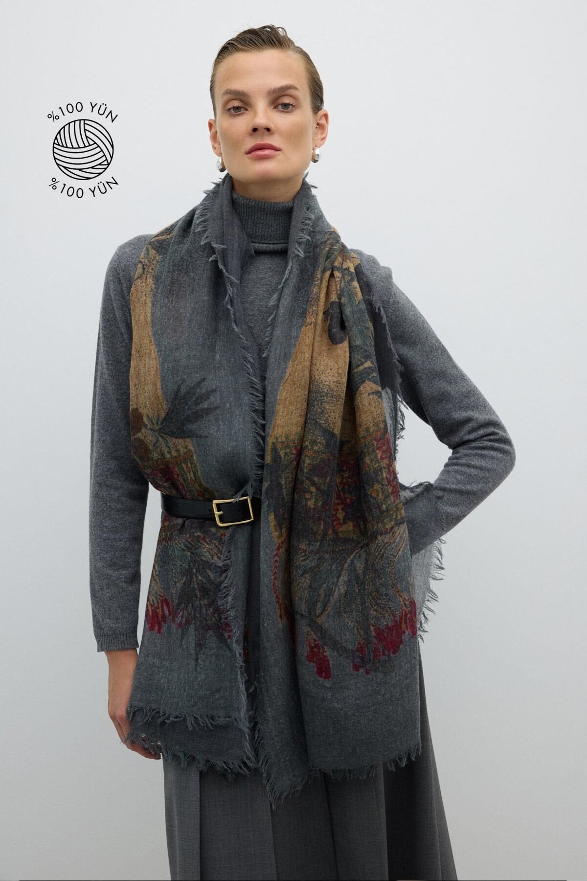 Yün Karışımlı Atkı Gri