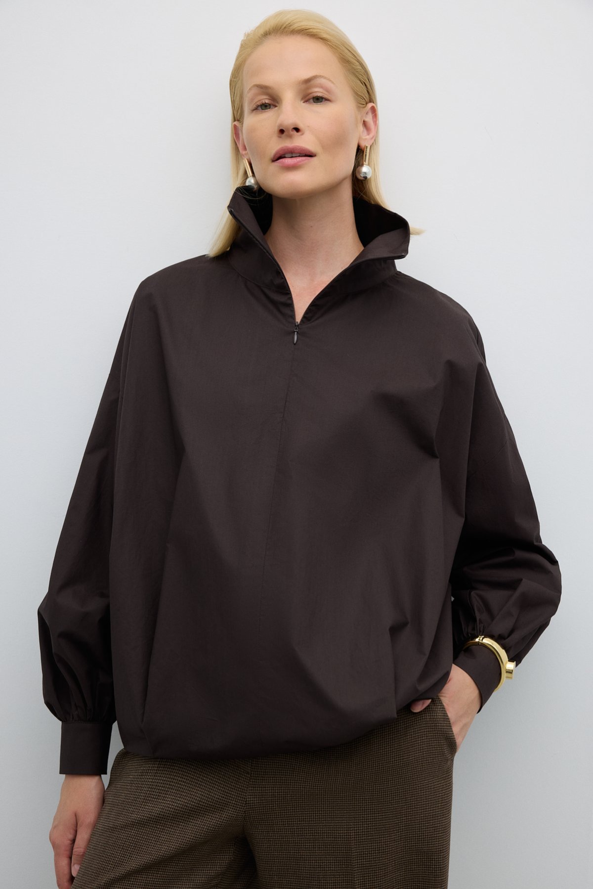 Dik Yaka Fermuarlı Gömlek Kahve - 1