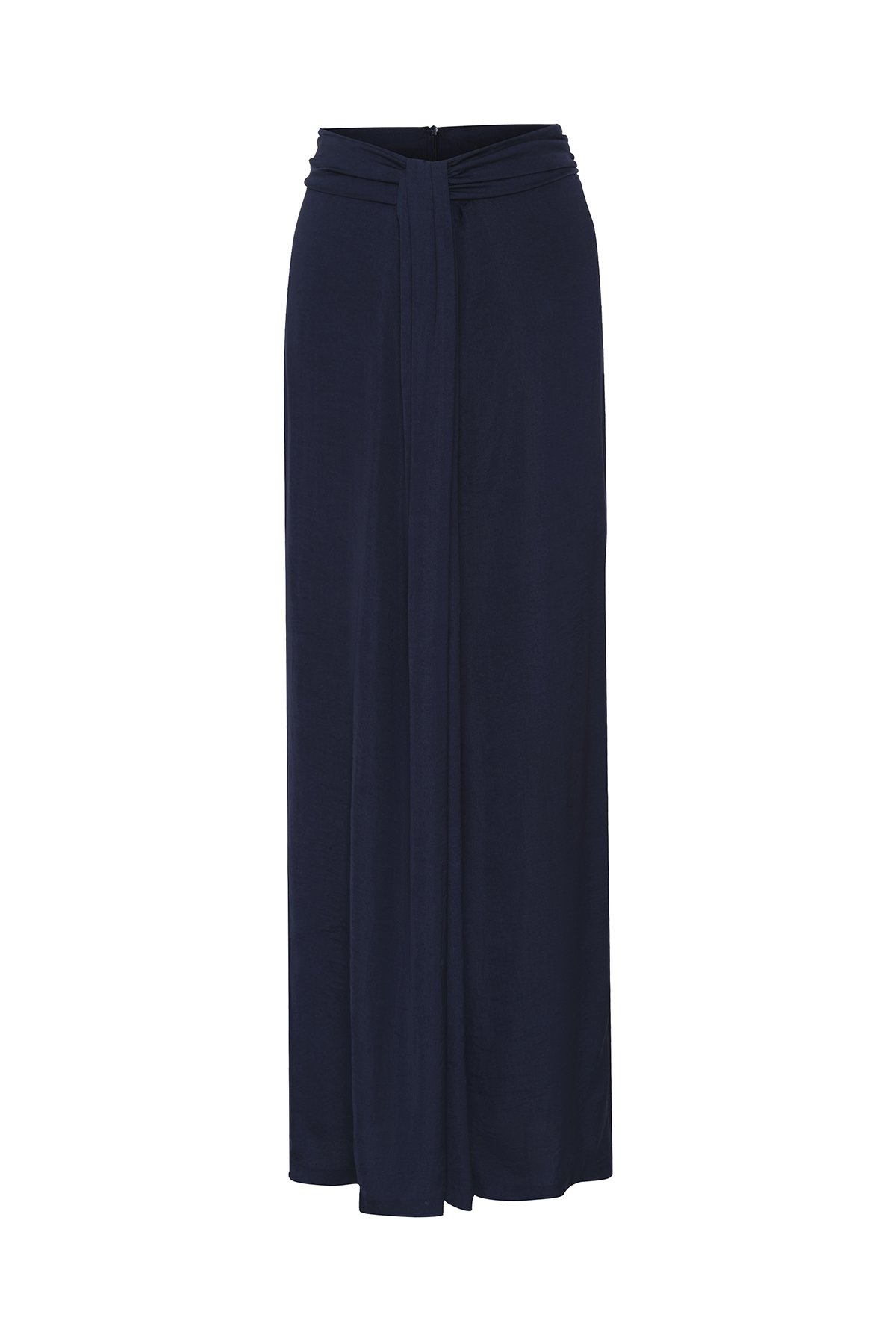Drape Detaylı Geniş Paça Pantolon Lacivert