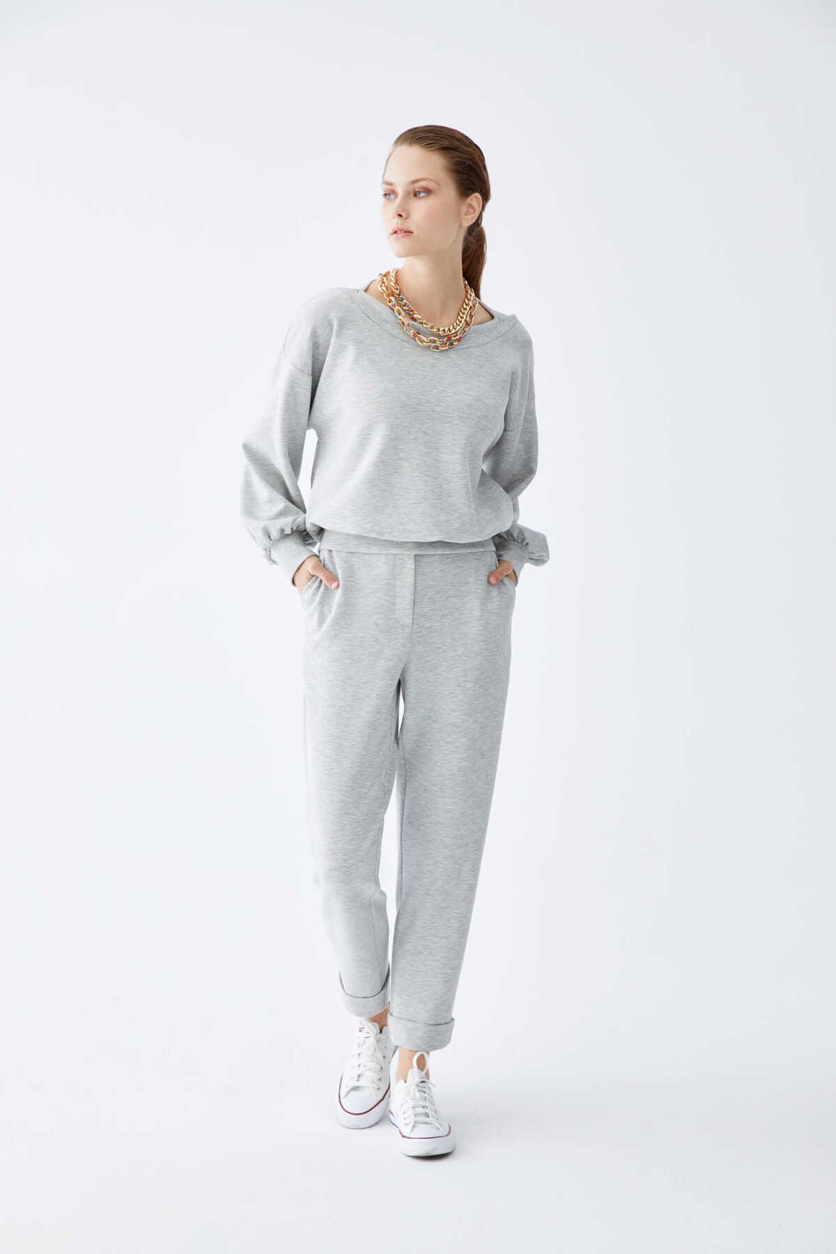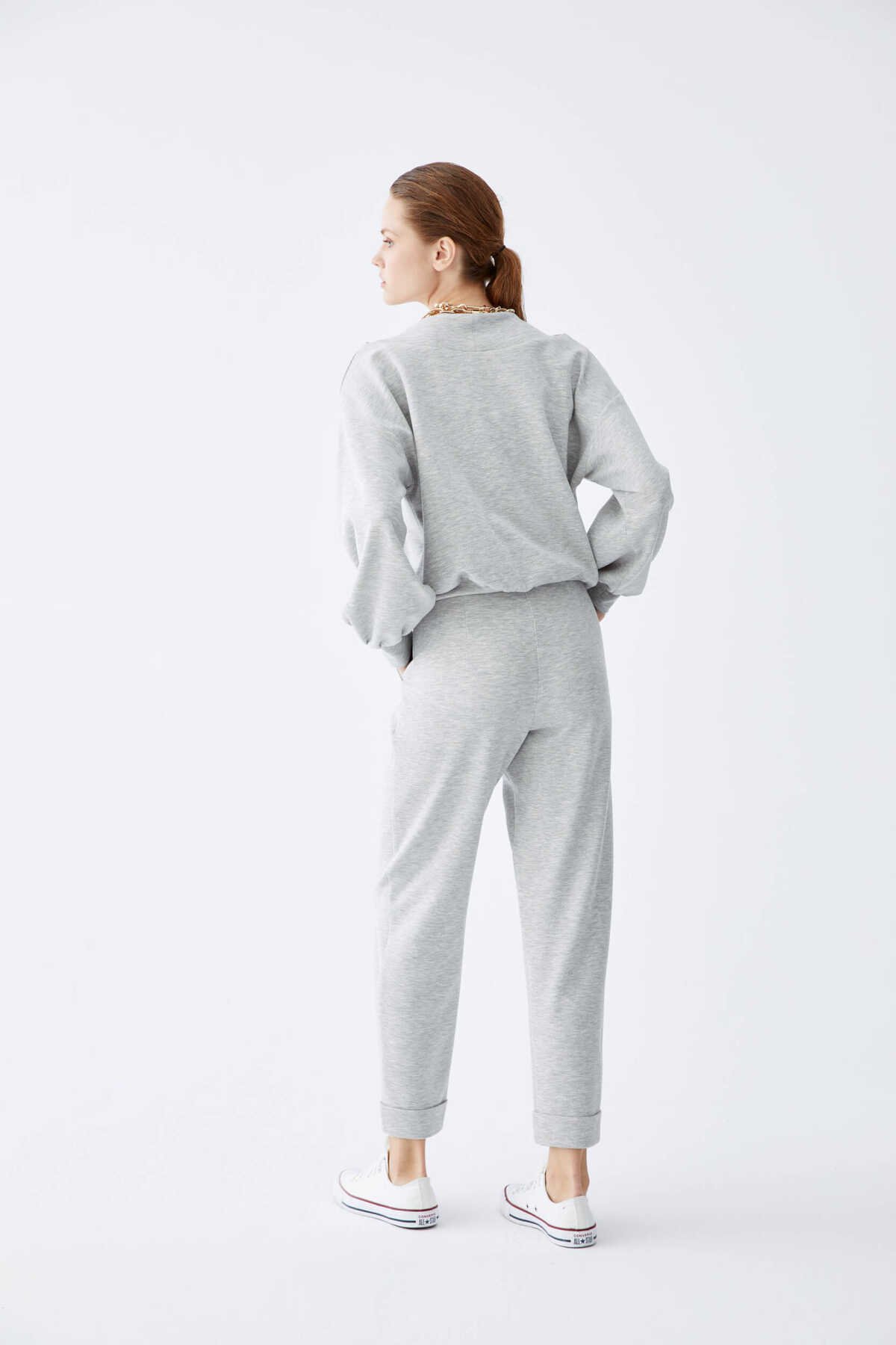 Yün Karışımlı Beli Lastikli Düz Paça Pantolon Kahve