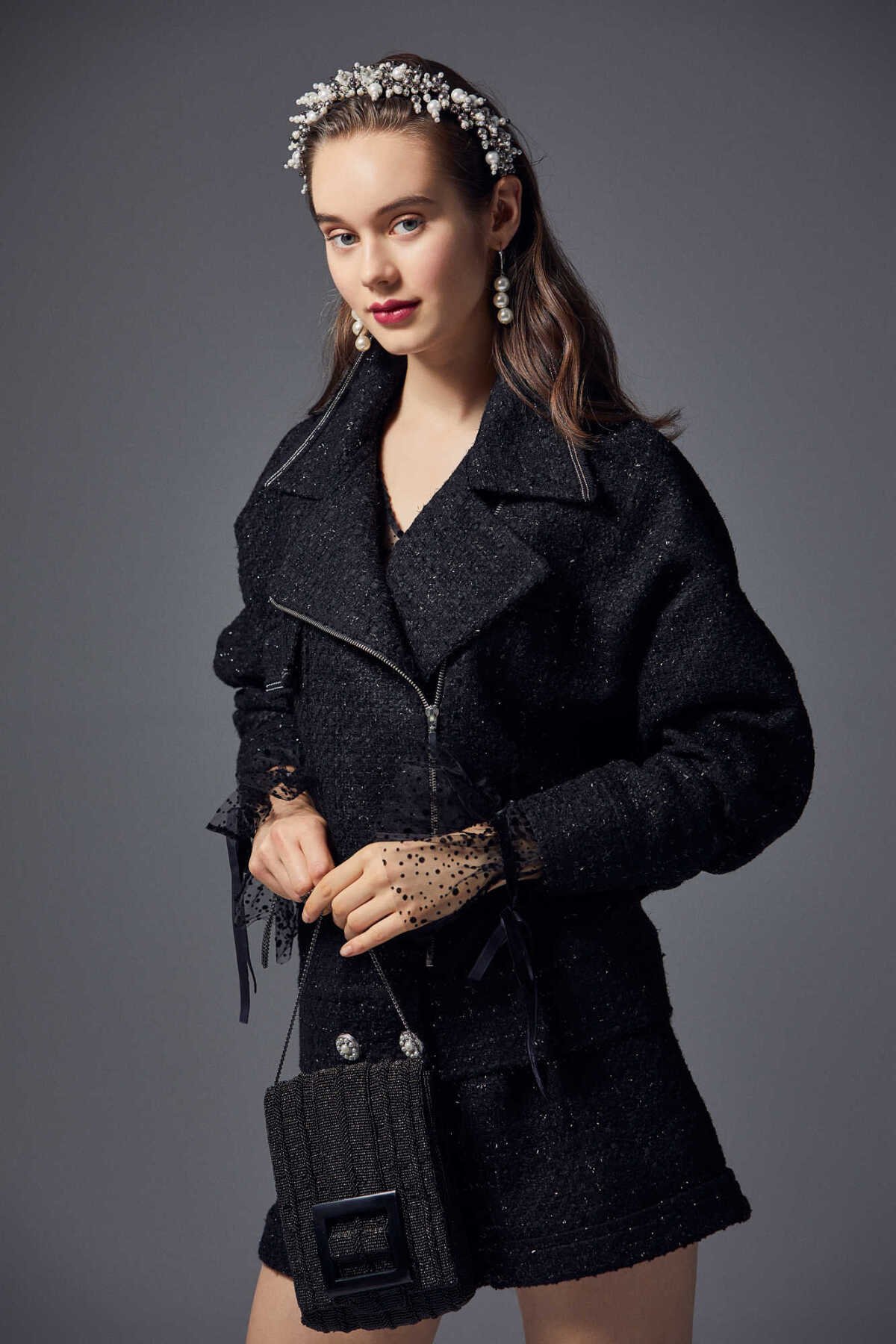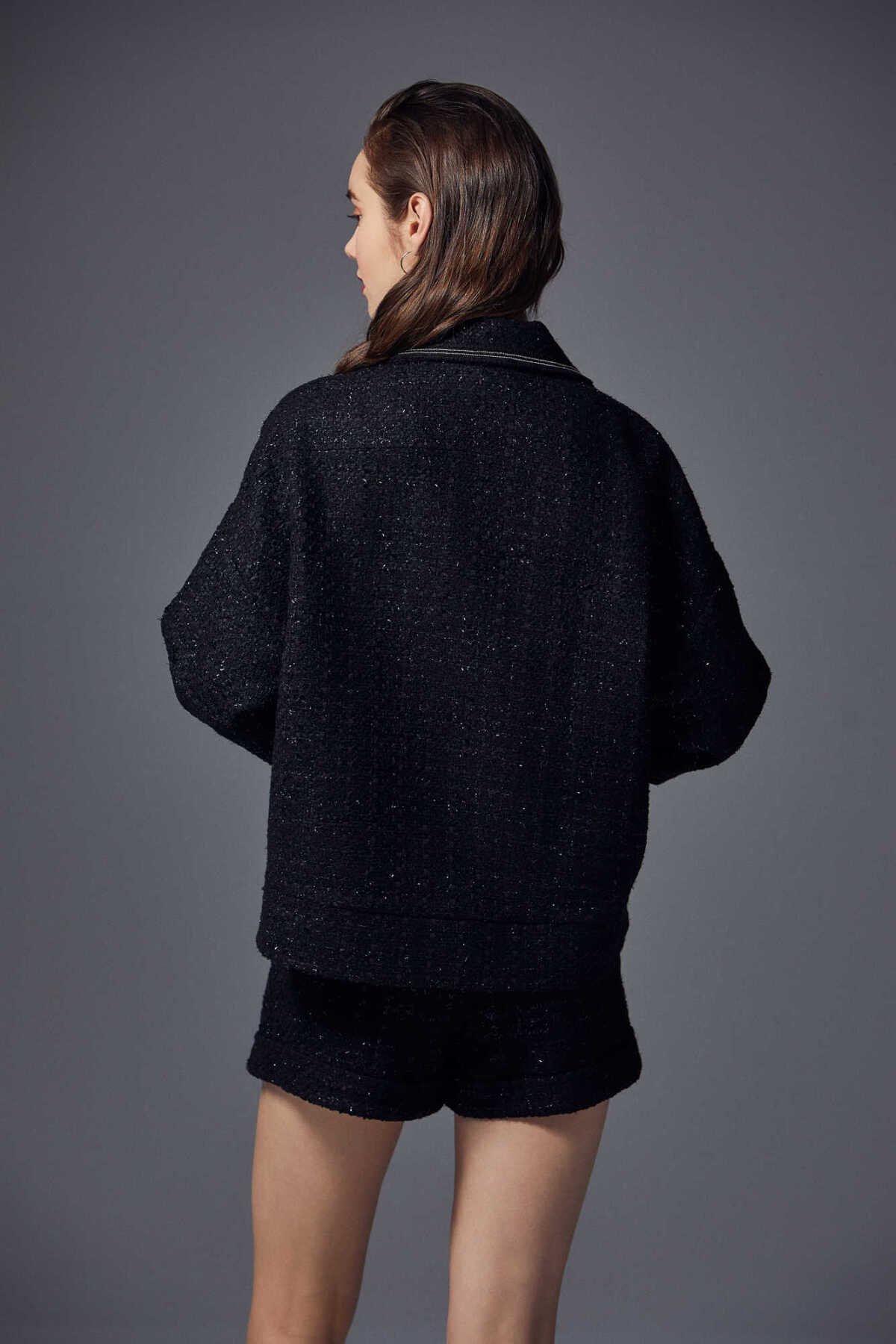 Önü Düğmeli Hakim Yaka Bomber Siyah