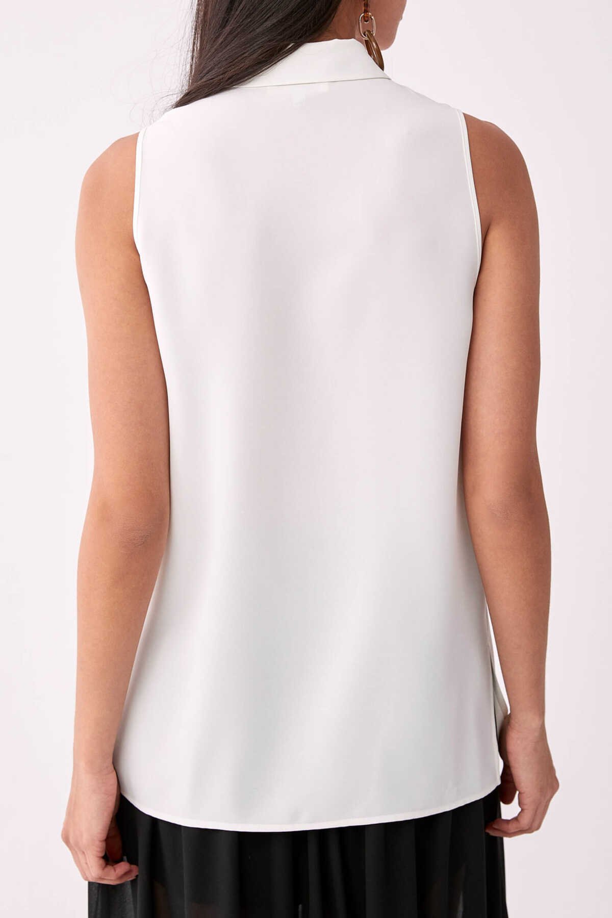 Yakası Fular Detaylı Kolsuz Poplin Bluz Beyaz
