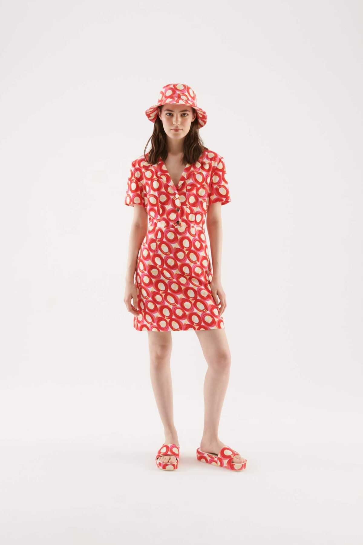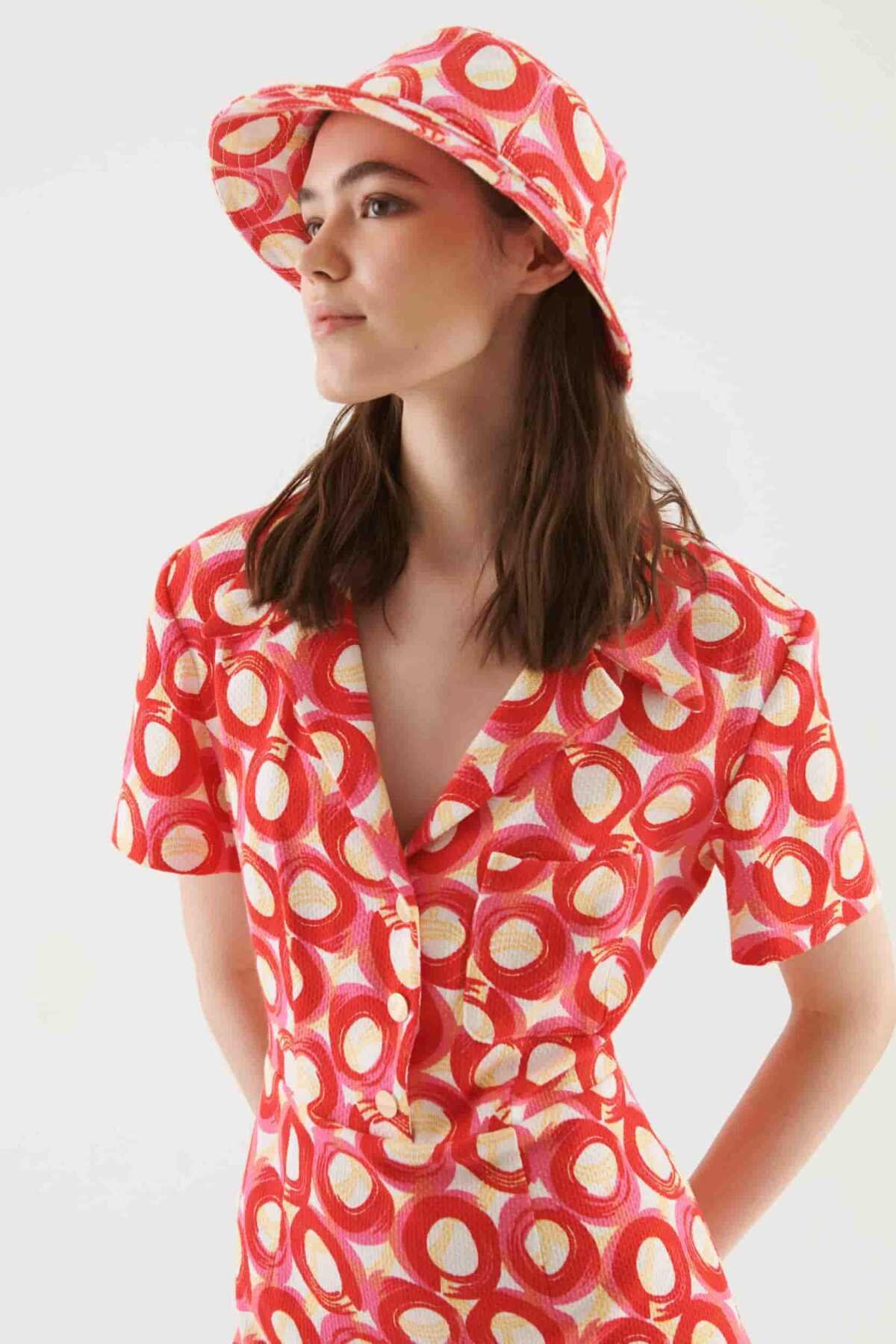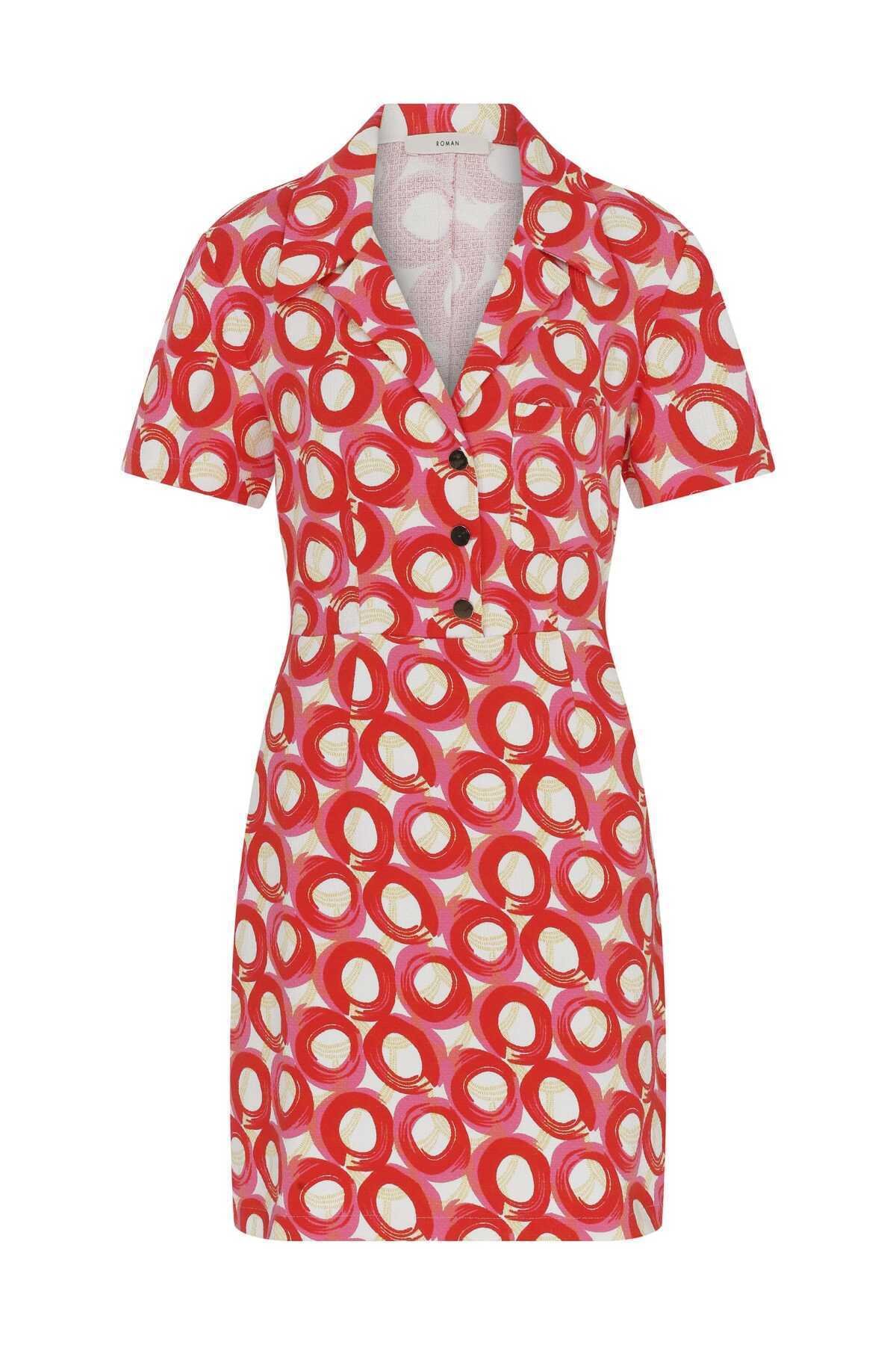 Düğmeli Desenli Elbise Standart Renk