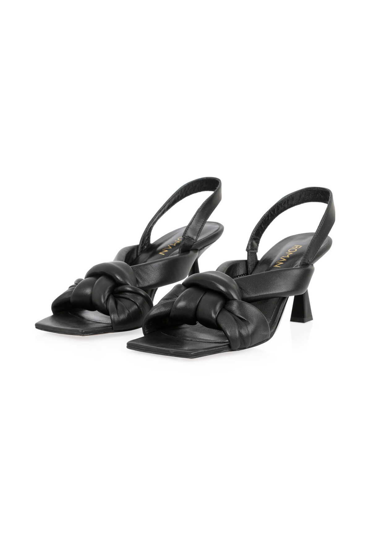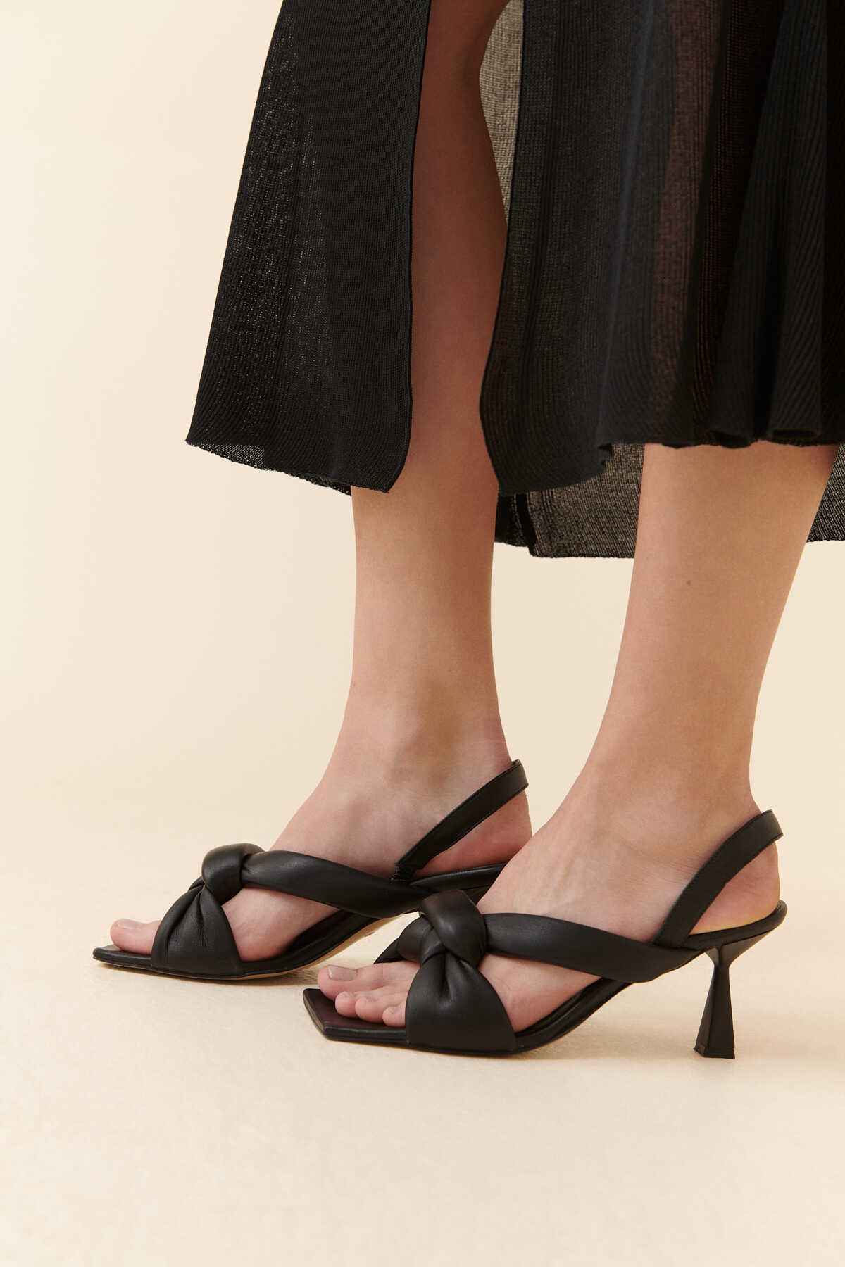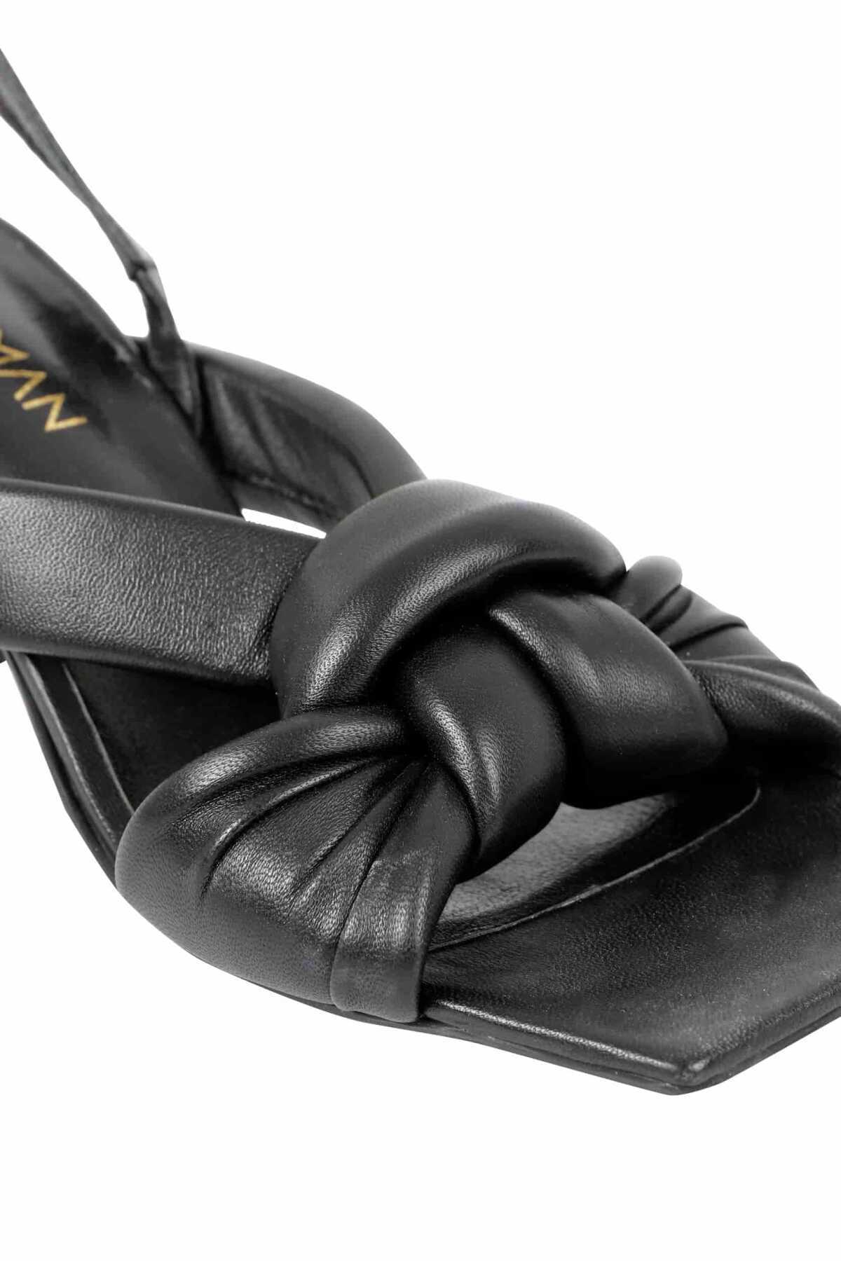 Düğümlü Deri Topuklu Terlik Siyah