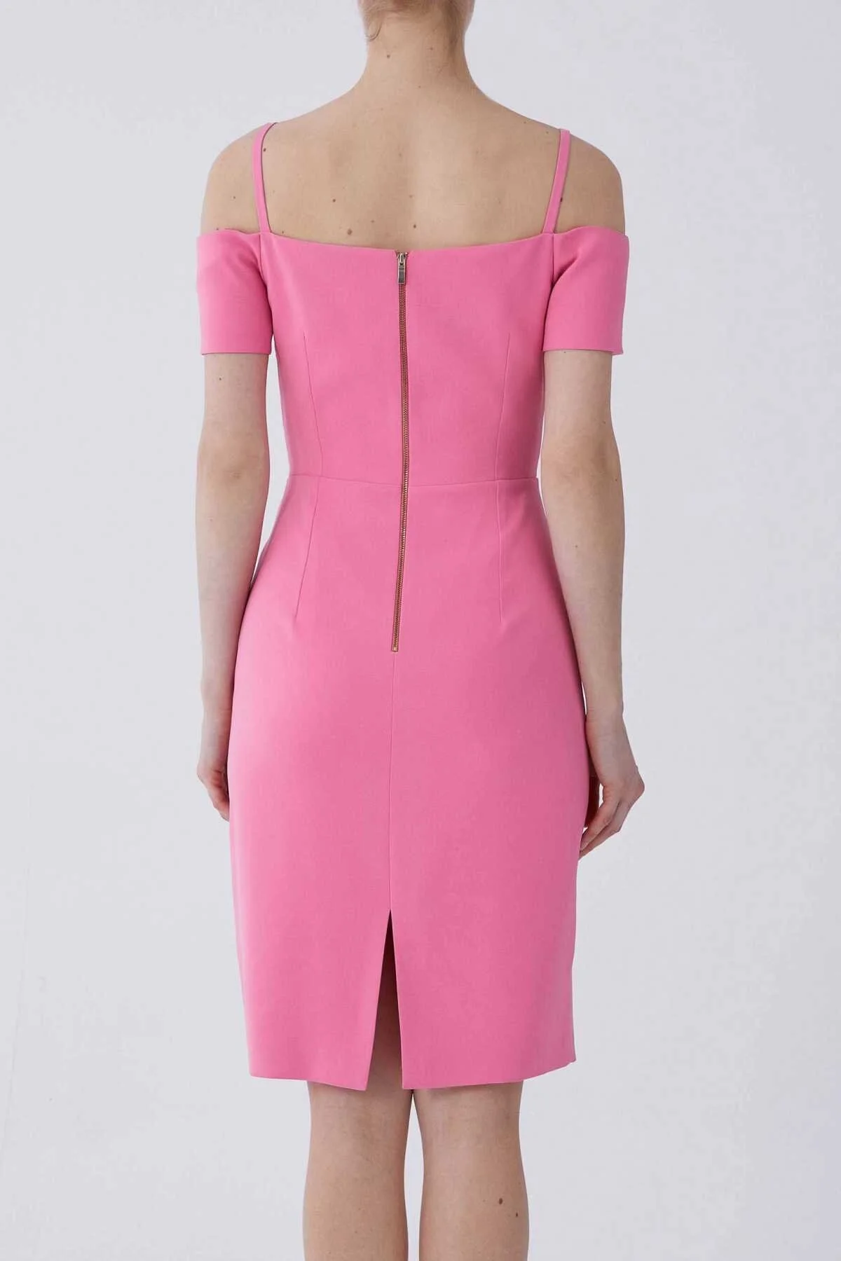 Düşük Kol Tüy Detaylı Abiye Elbise Pembe