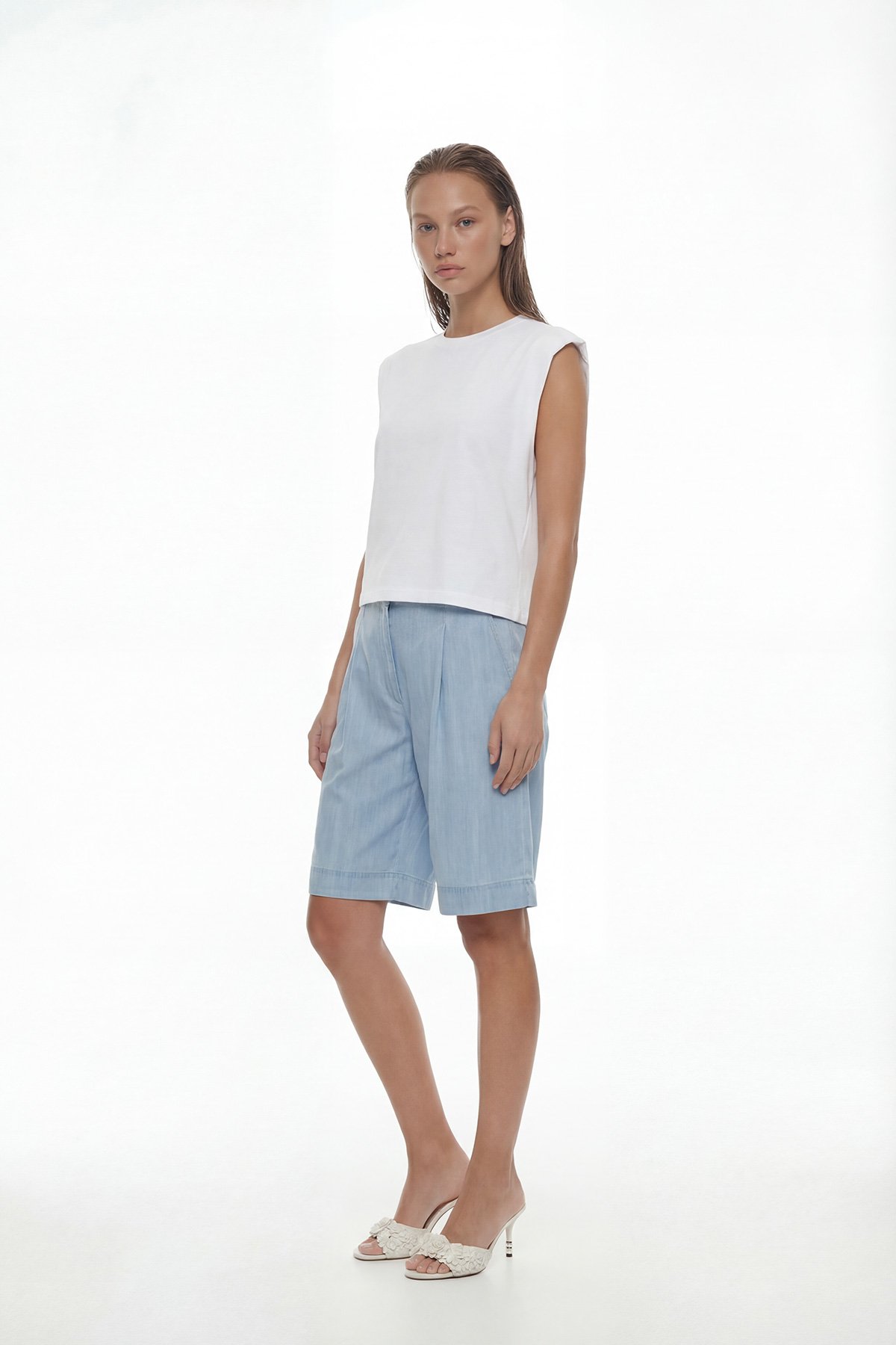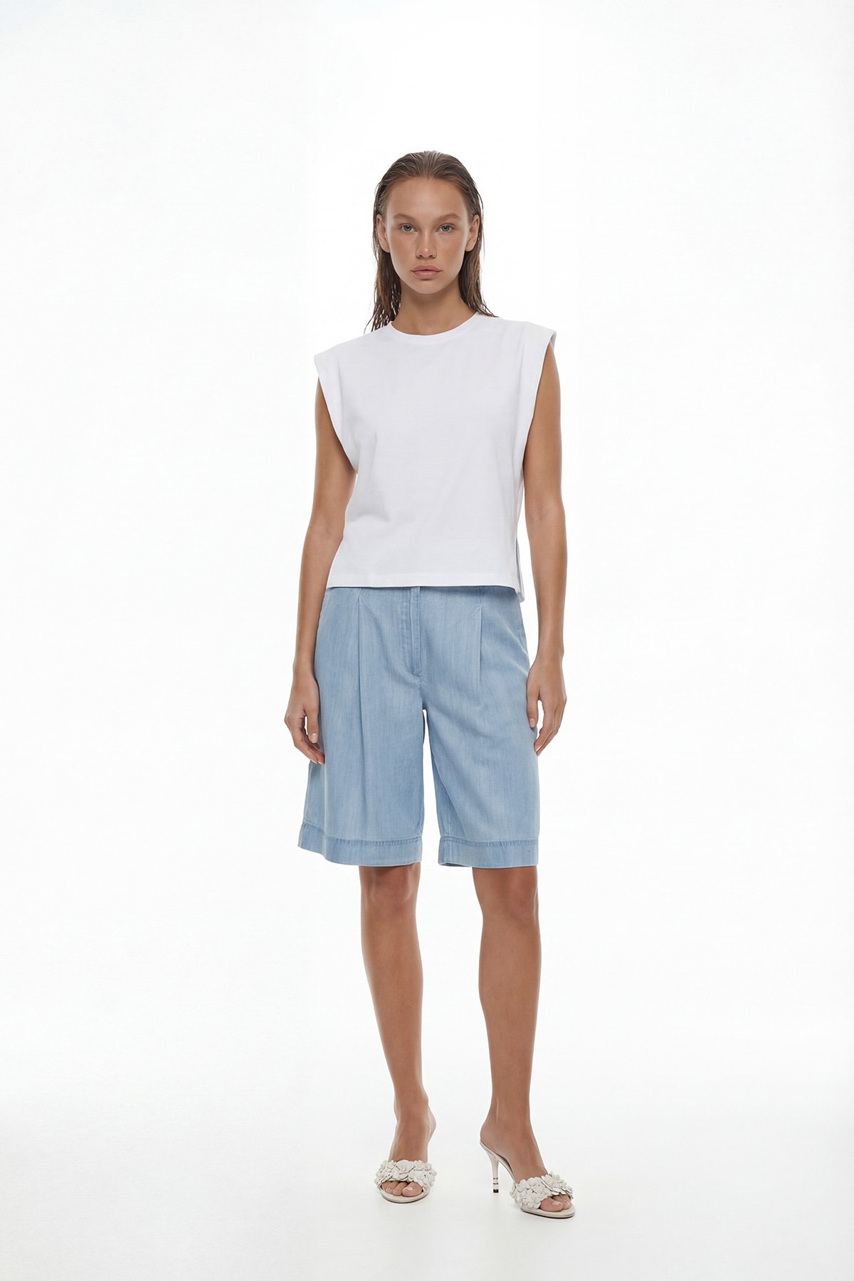 Düğüm Grünümlü Kolsuz T-shirt Mavi