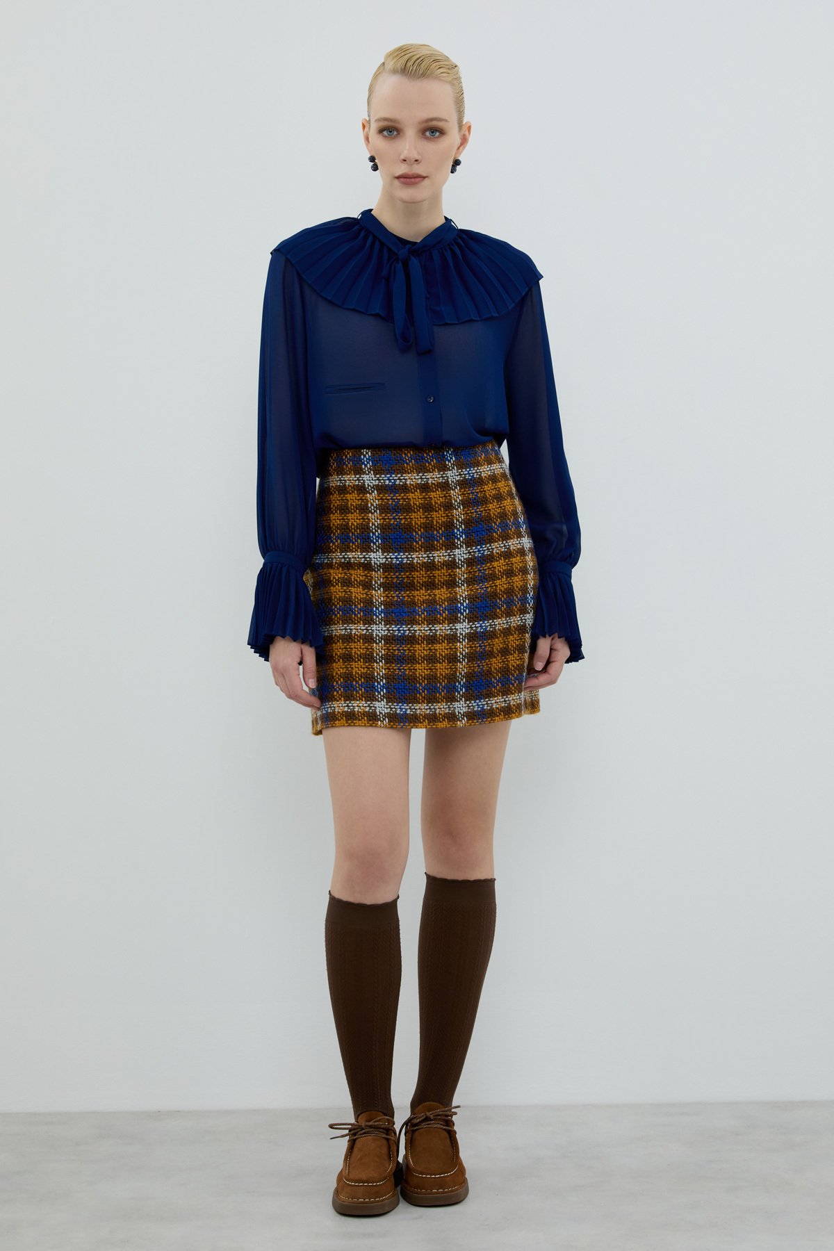 MODEL ÖLÇÜLERİ: Beden: 36 Boy: 177 cm Göğüs: 84cm Bel: 62 cm Kalça: 91 cm Model S Beden Giymektedir.