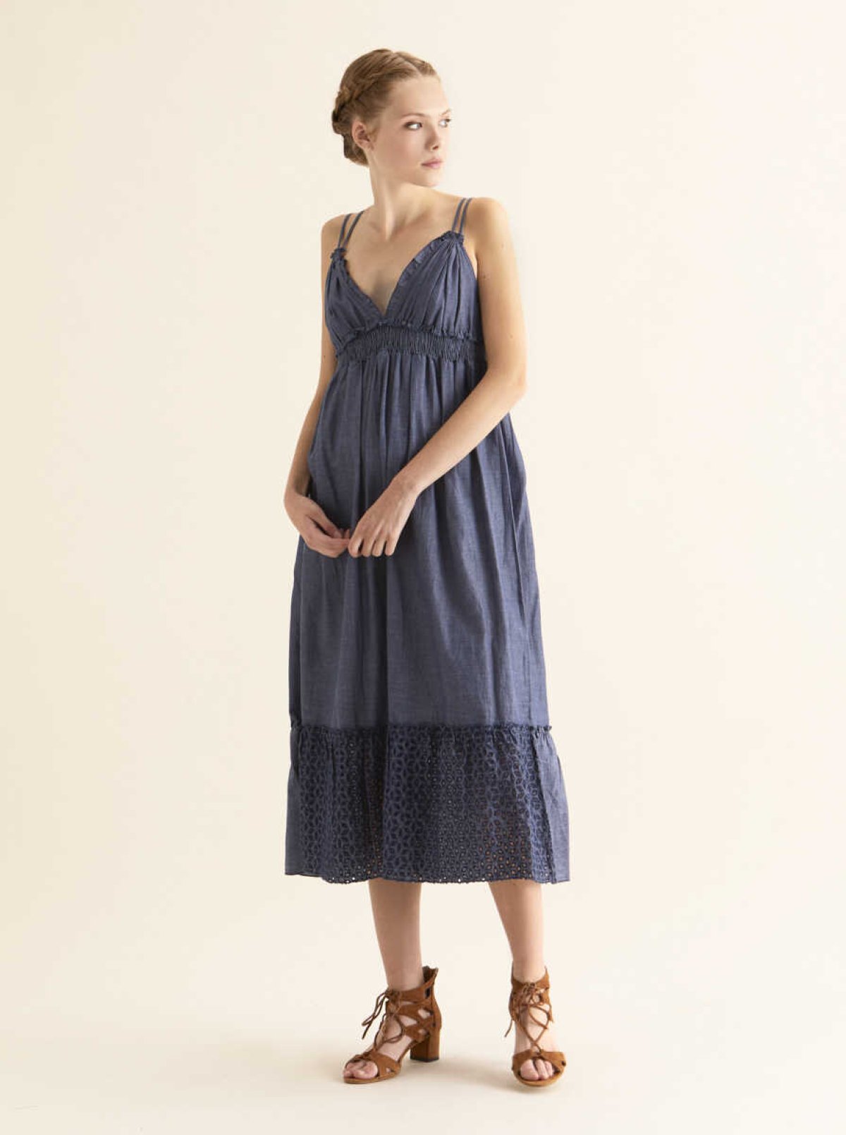 Etek Ucu Detaylı Indigo Günlük Elbise İndigo