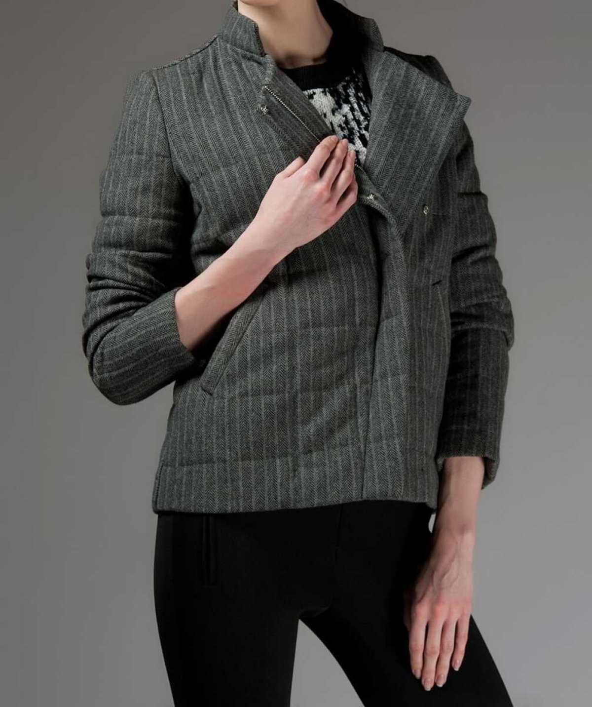 Fermuar Detaylı Kadın Ceket Gri