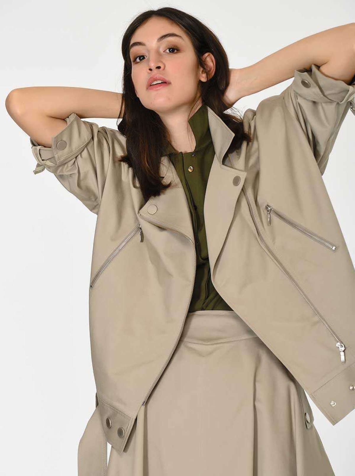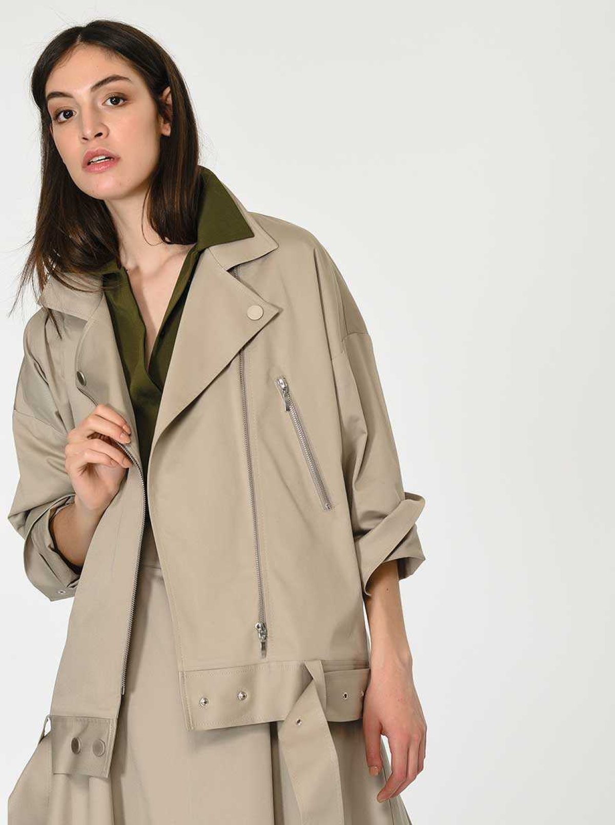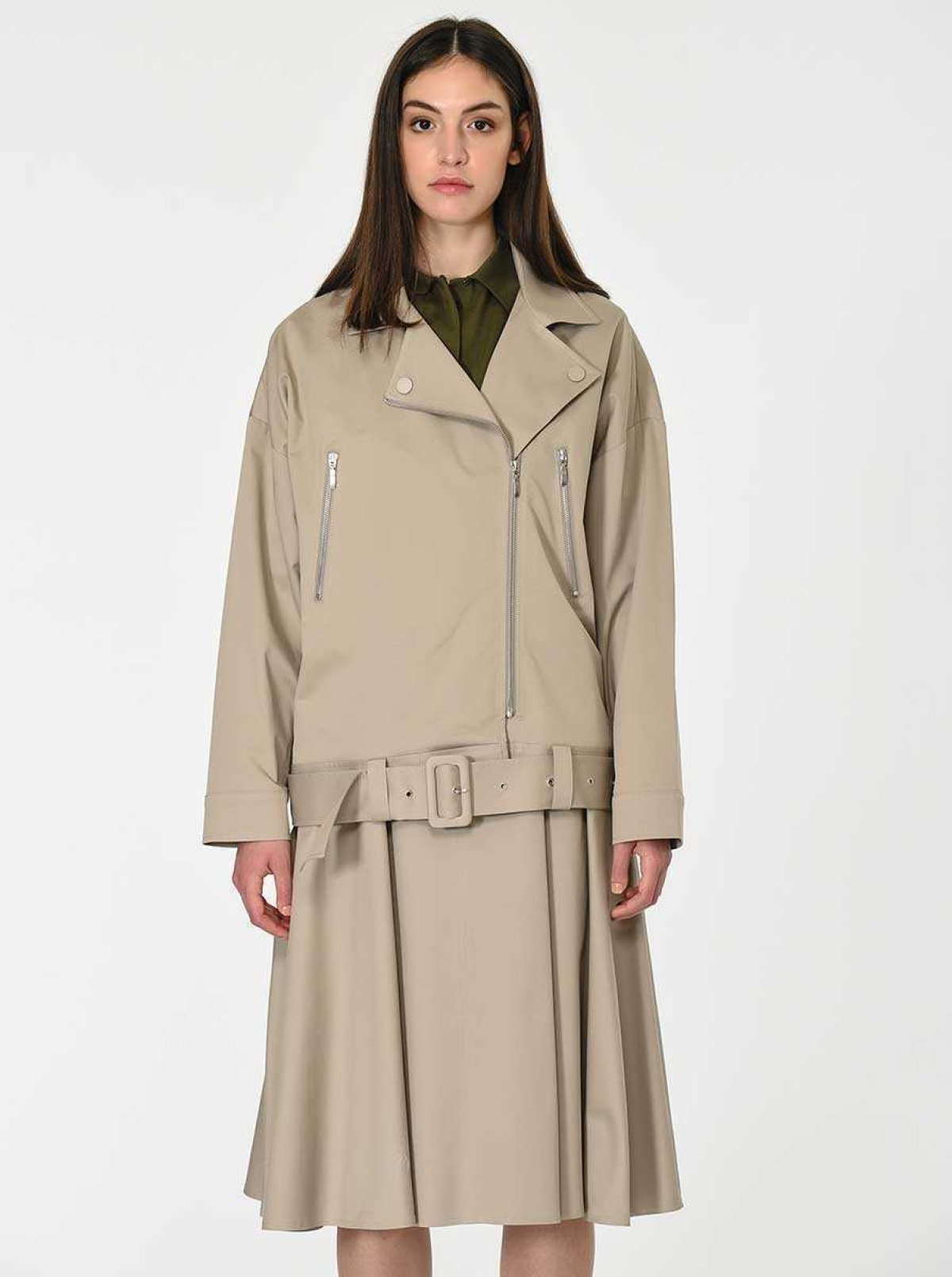 Fermuar Ve Kemerli Rengi Ceket Taş