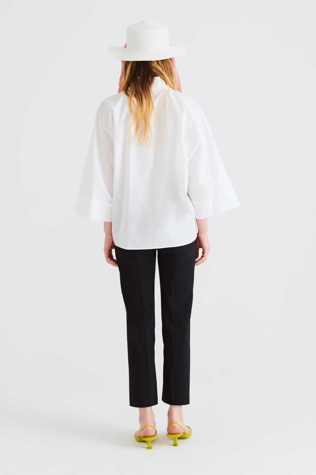 Pili Detaylı Beli Kemerli Gömlek Beyaz