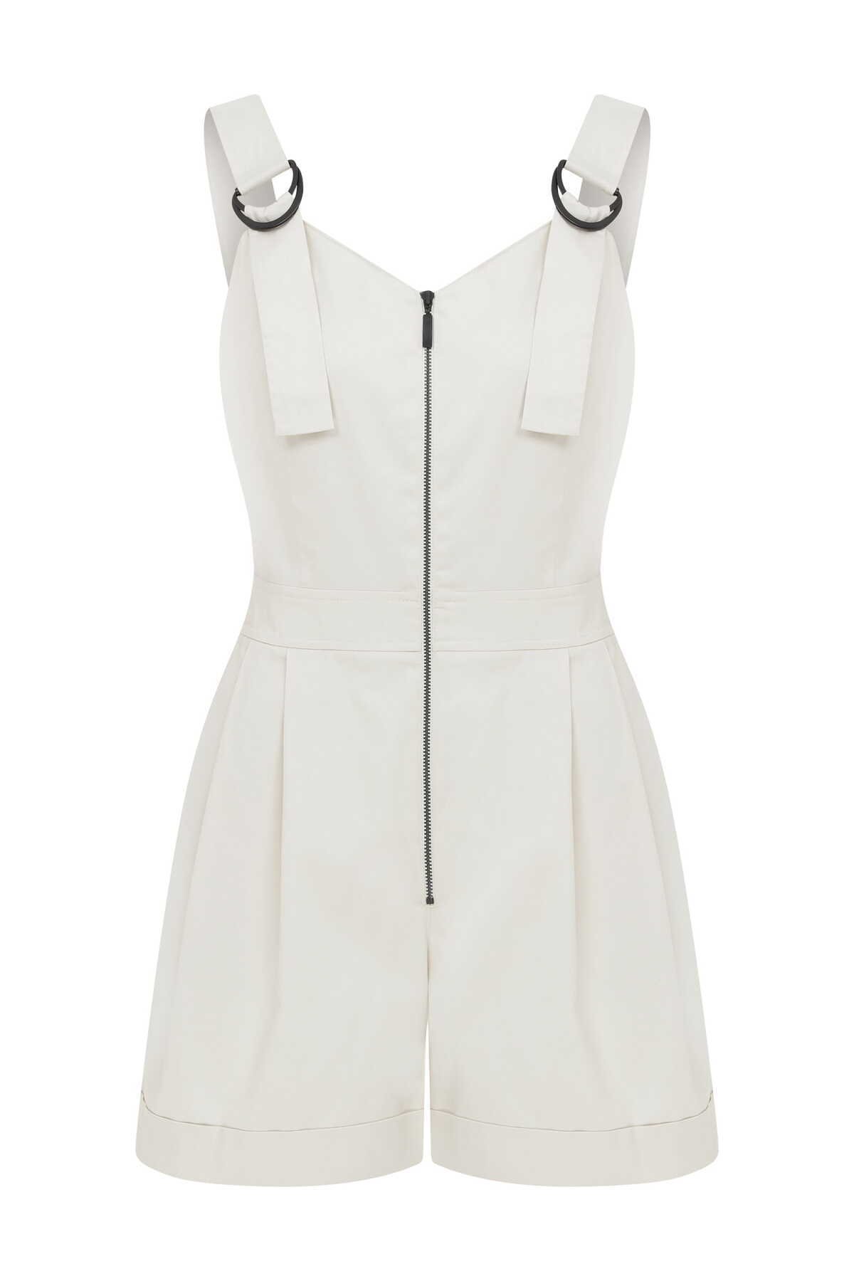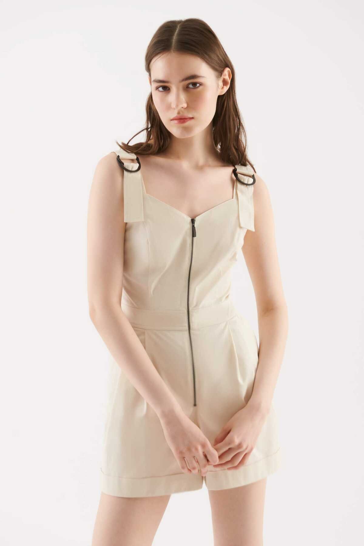 Fermuarlı Kadın Tulum Bej