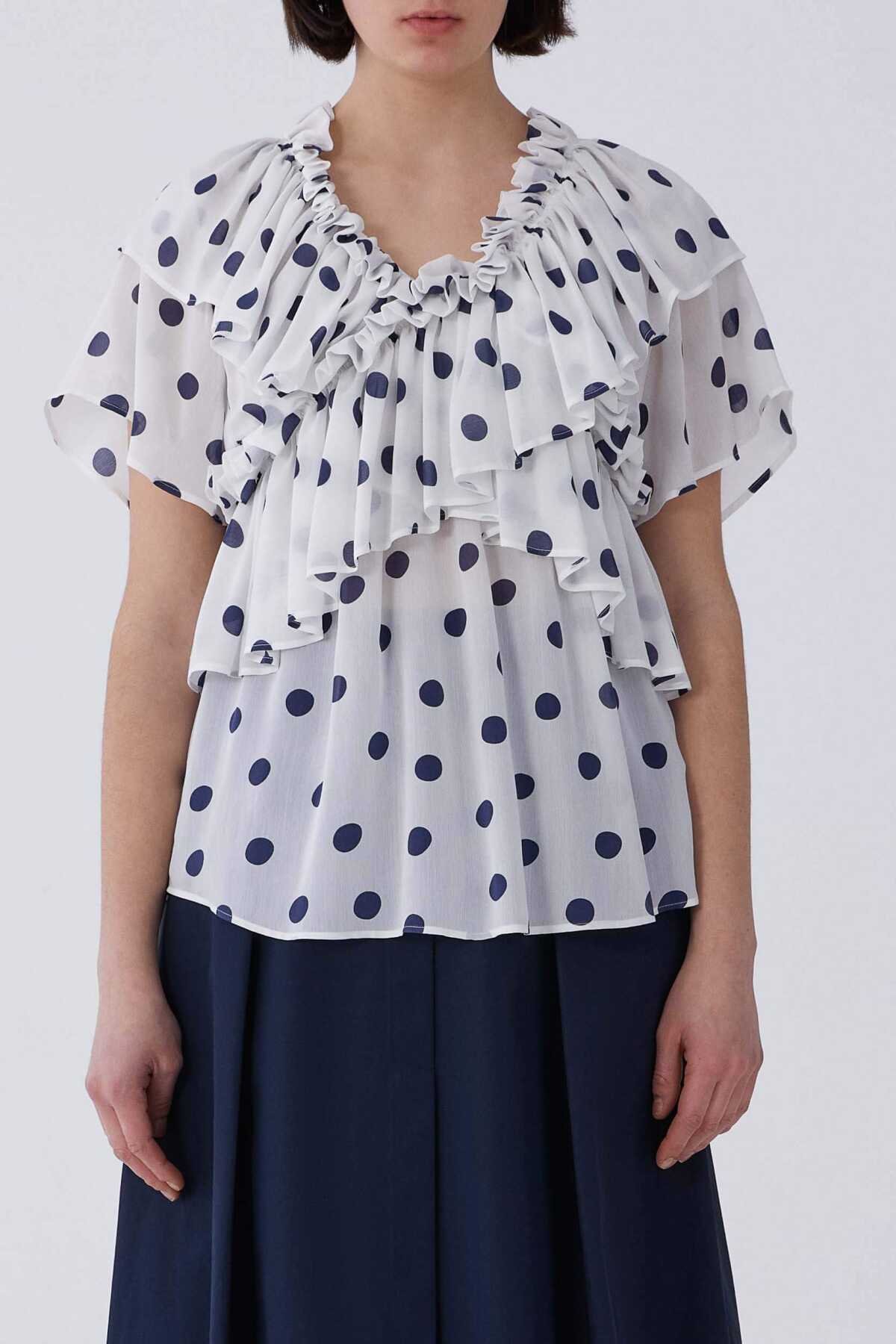 Fırfırlı Siyah Puantiyeli Bluz Standart Renk