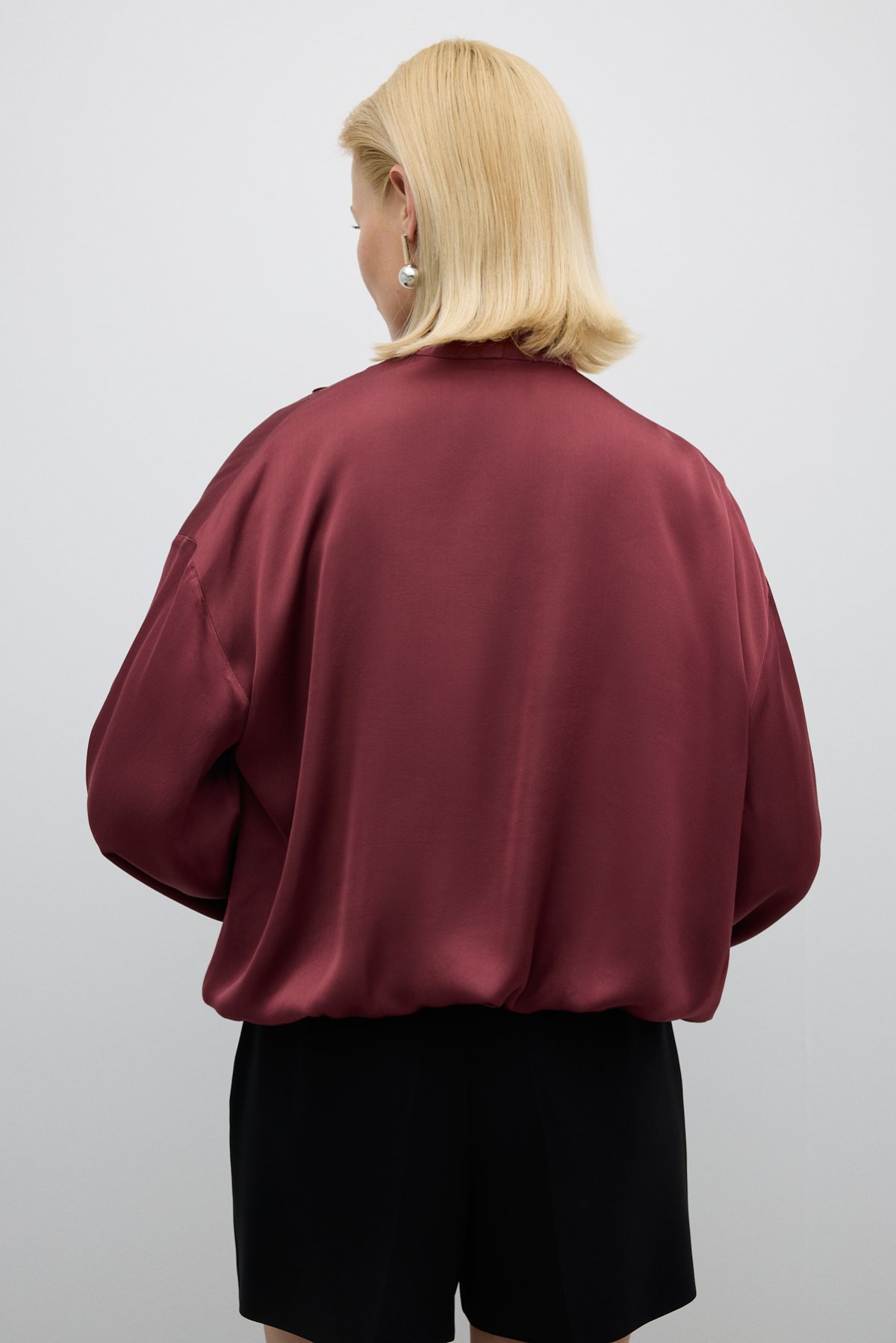 Fular Bağlamalı Kruvaze Saten Bluz Bordo - 1