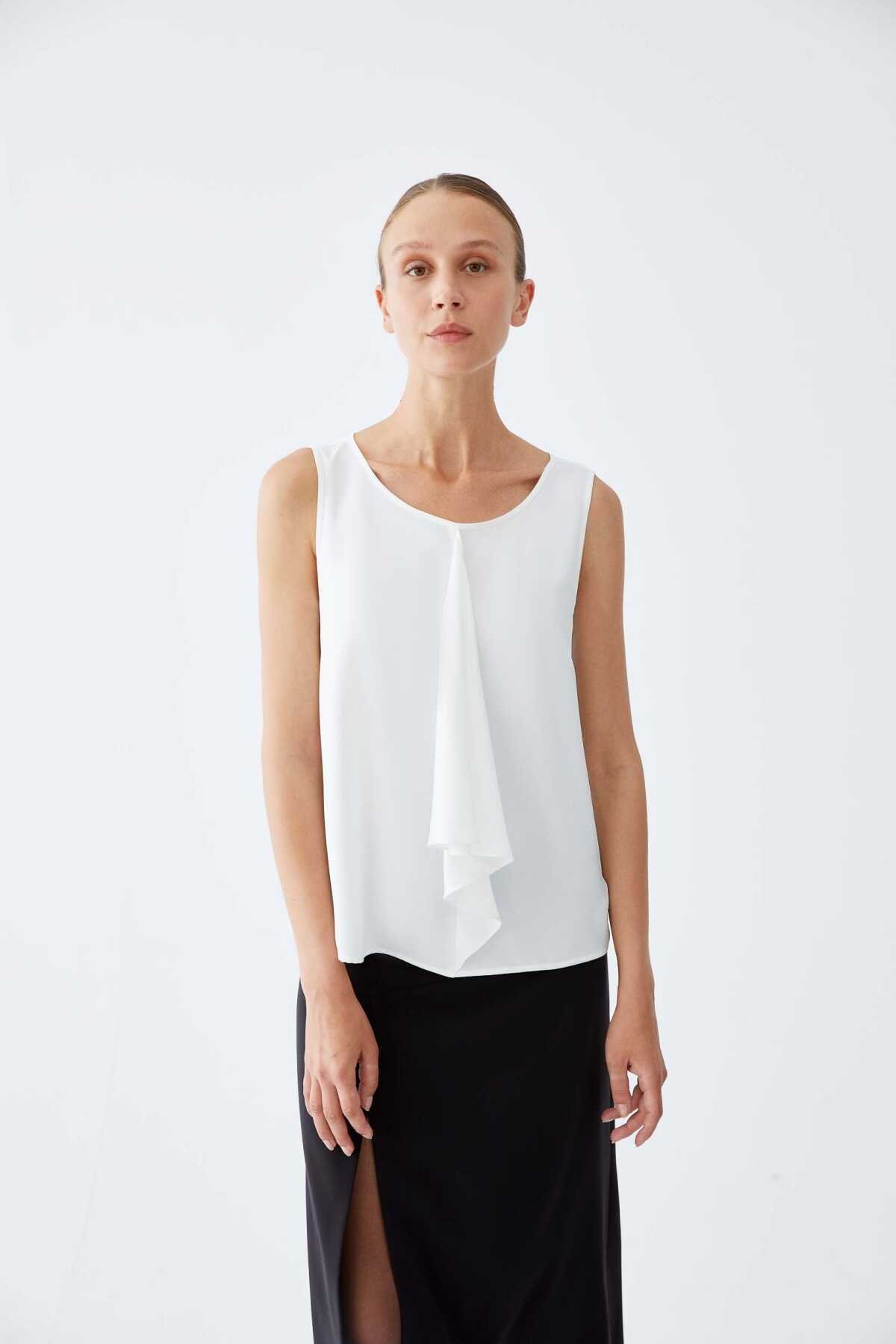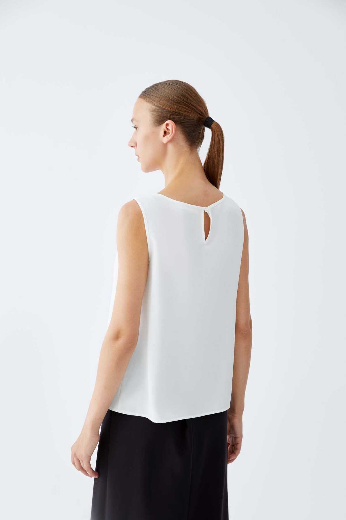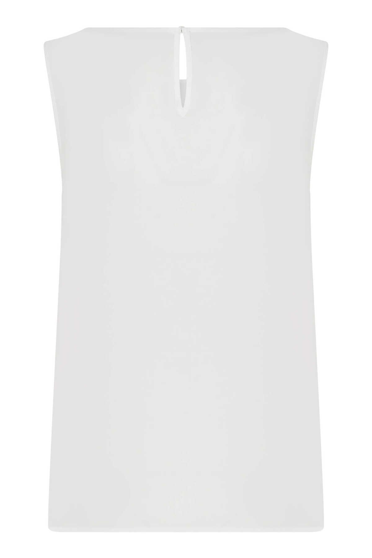 Yakası Fular Detaylı Kolsuz Poplin Bluz Beyaz