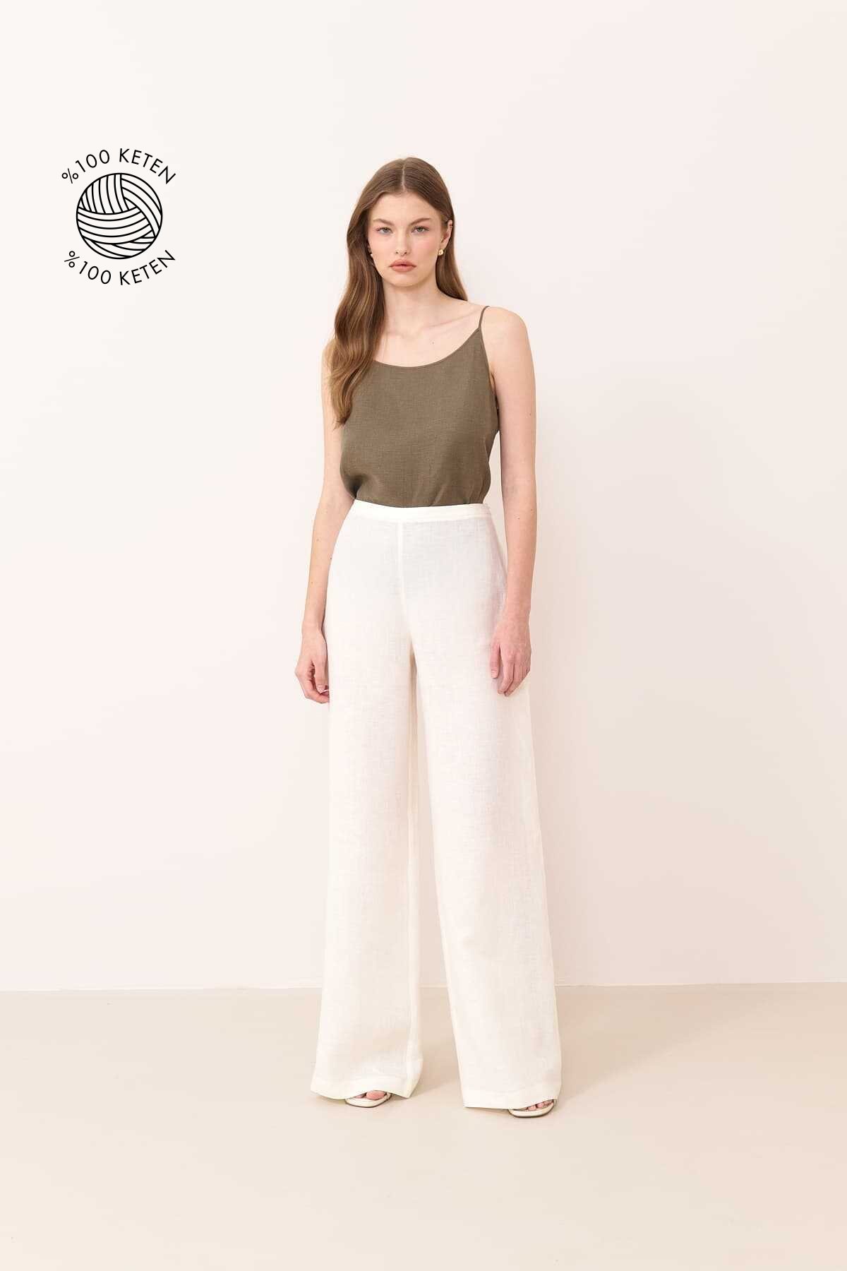 geniş paça keten pant.