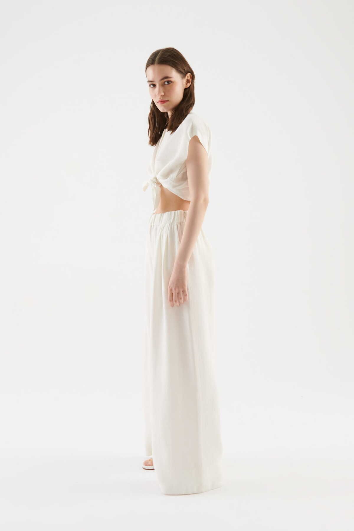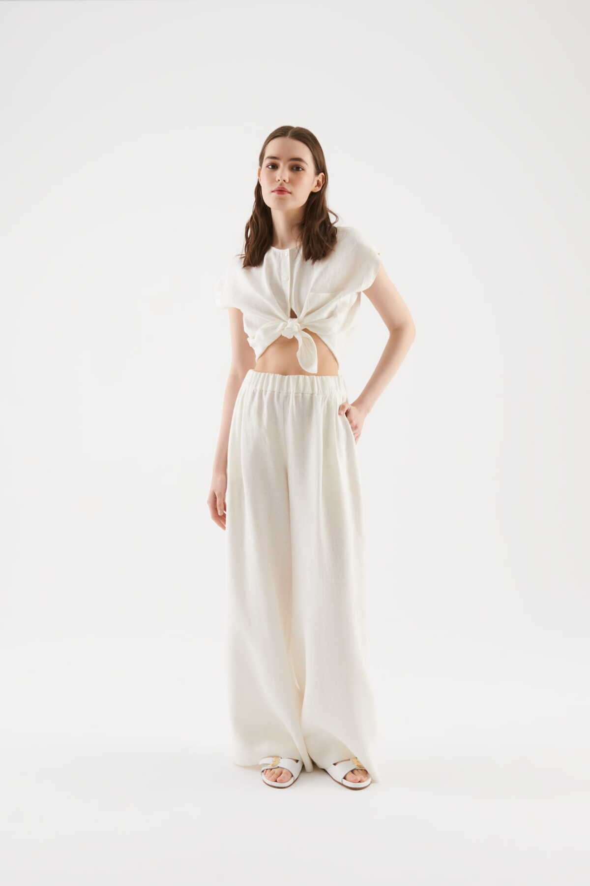 KUMAŞ İÇERİĞİ: Ana Kumaş: %100 Keten , YIKAMA TALİMATI: Makine Yıkama , Hassas İtinalı Yıpratmadan ÜTÜLEME TALİMATI: Düşük Isıda Ütüleme 110C Tersten Ütüleyiniz KURUTMA TALİMATI: Sıkmadan Askıda Kurutma ALT ÜRÜN GRUBU: Belı lastıklı MODEL ÖLÇÜLERİ: