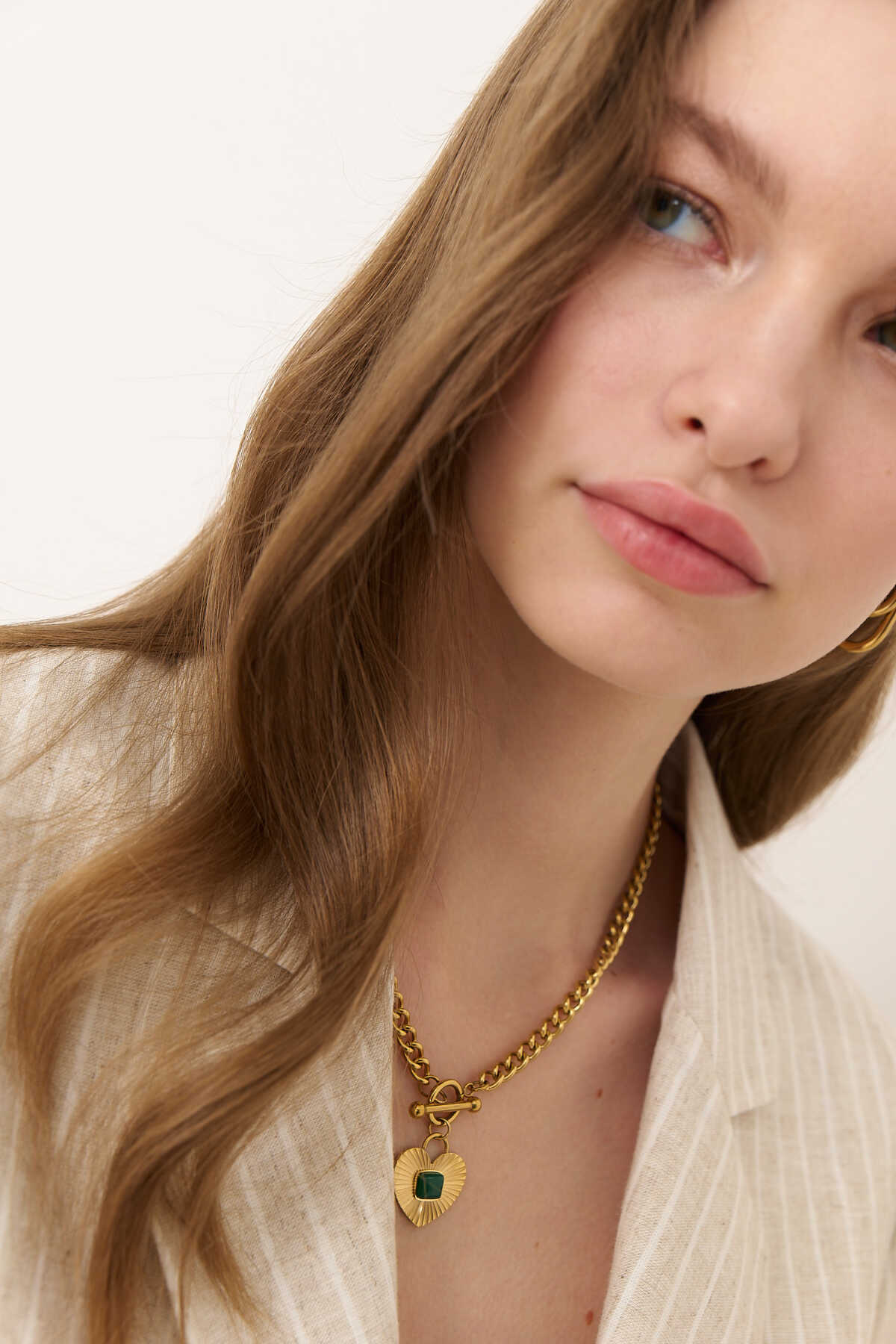 İnci Detaylı Uzun Zincir Kolye Pudra