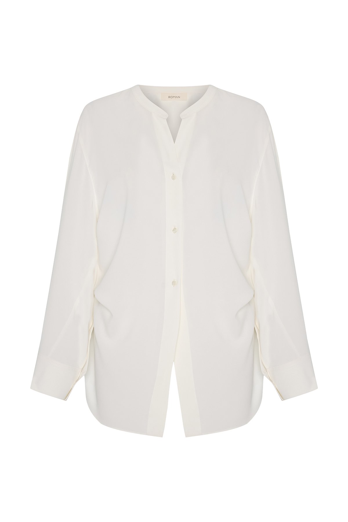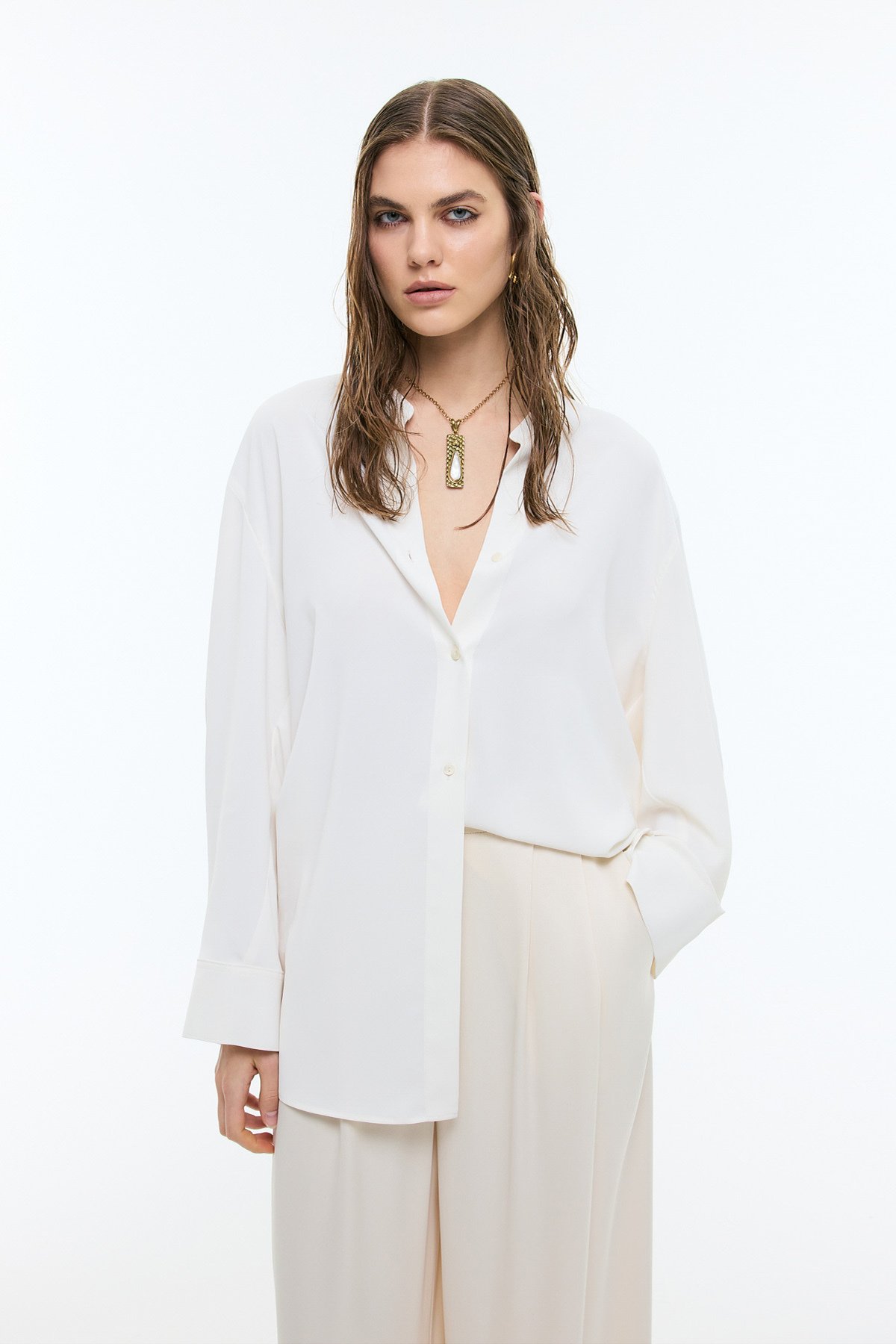 Hakim Yaka Geniş Kesim Gömlek Ekru