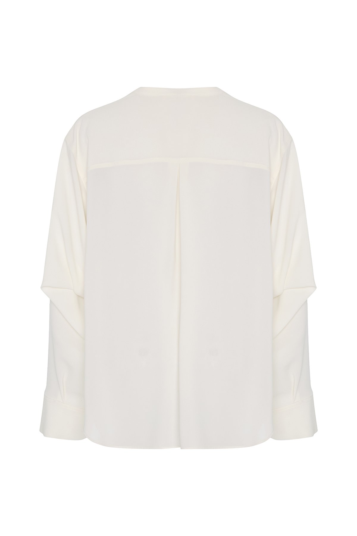 Hakim Yaka Geniş Kesim Gömlek Ekru - 2