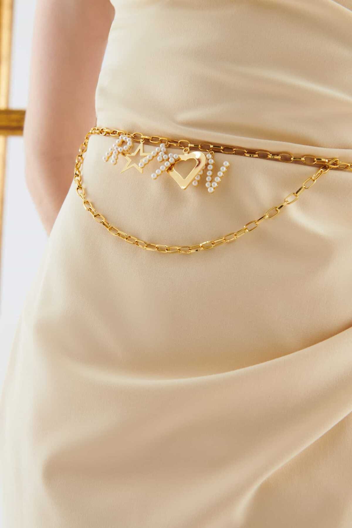 %100 Deri Gold Toka Detaylı Kemer Bej