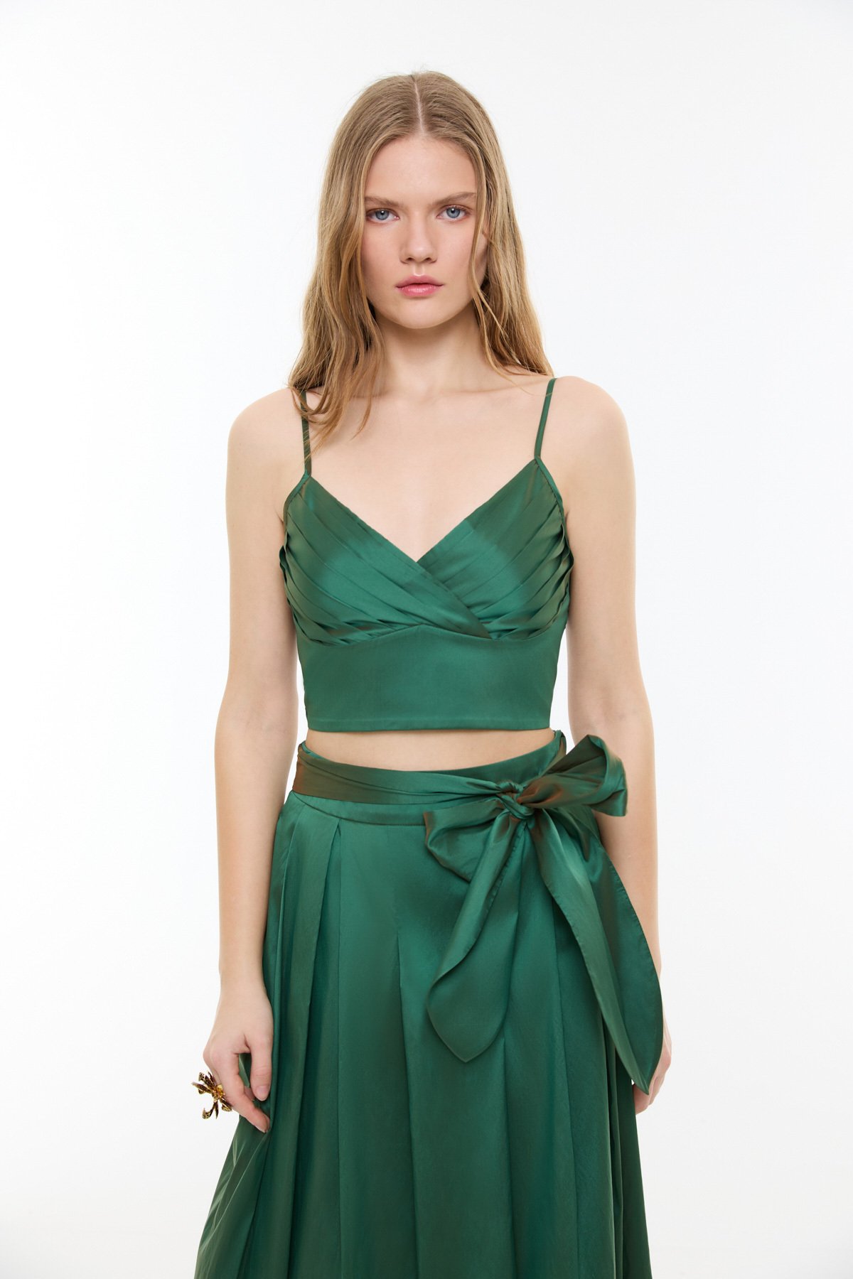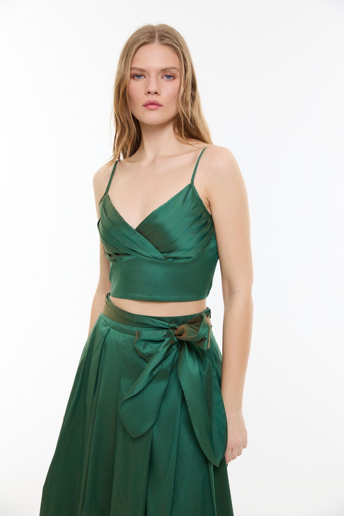 İnce Askılı Drapeli Büstiyer Yeşil