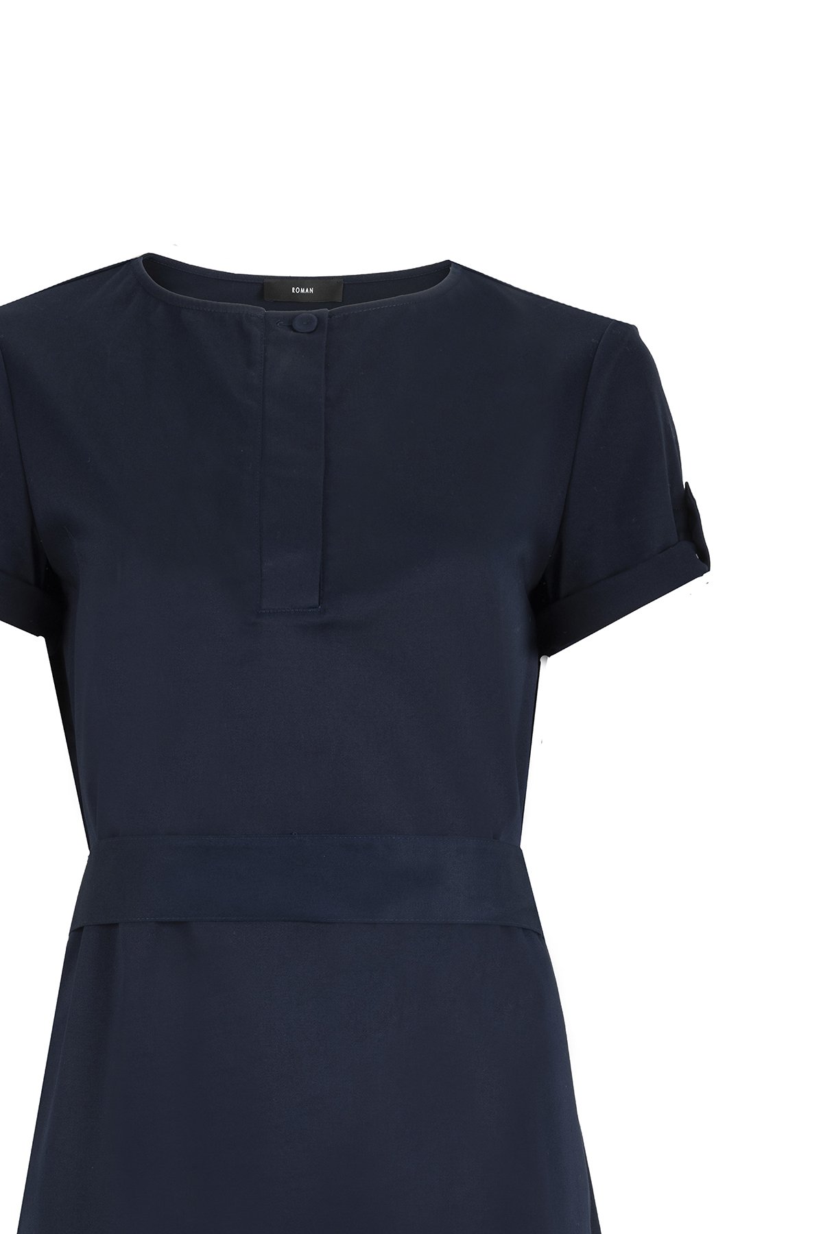 Polo Yaka Yanları Yırtmaçlı Elbise Lacivert