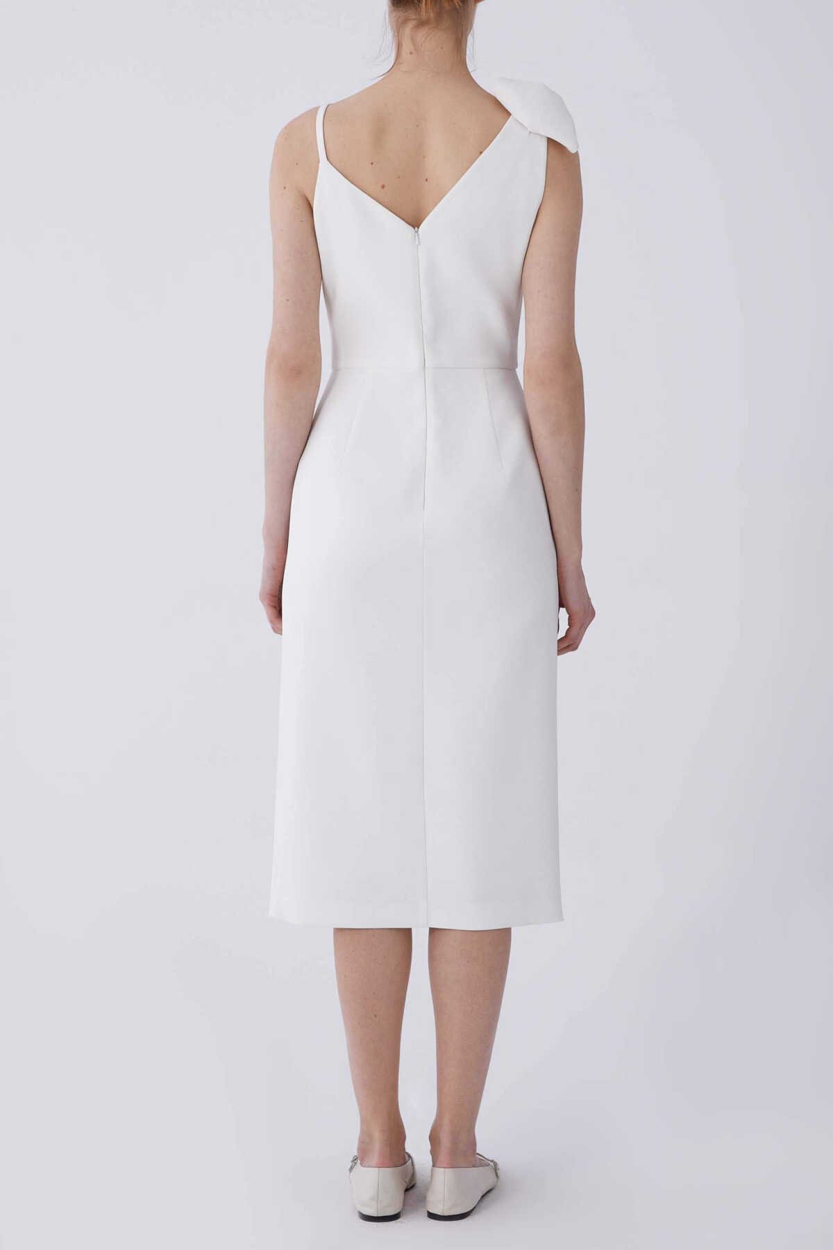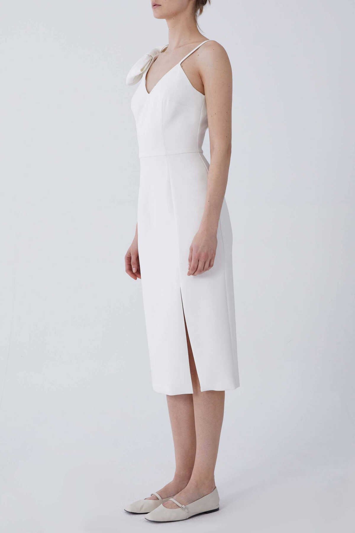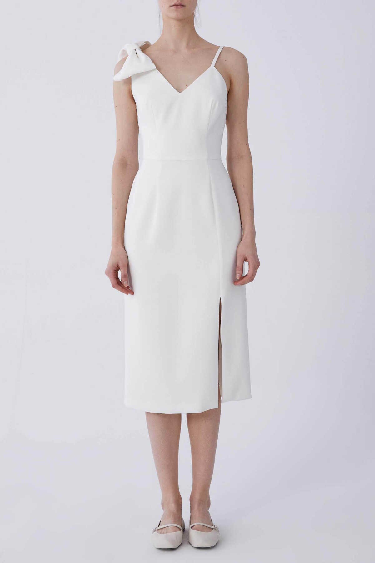 İp Askılı Kurdele Detaylı Abiye Elbise Beyaz