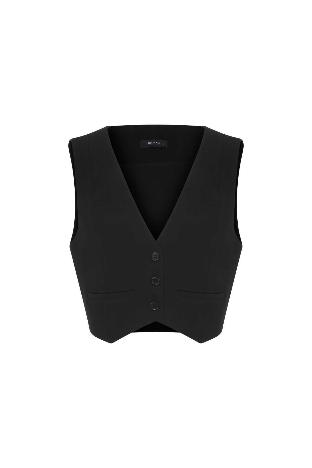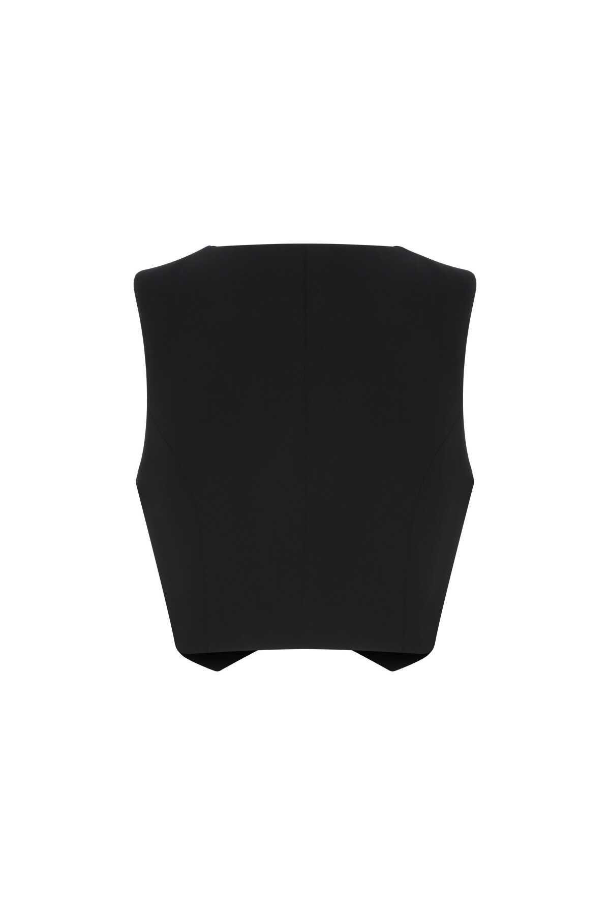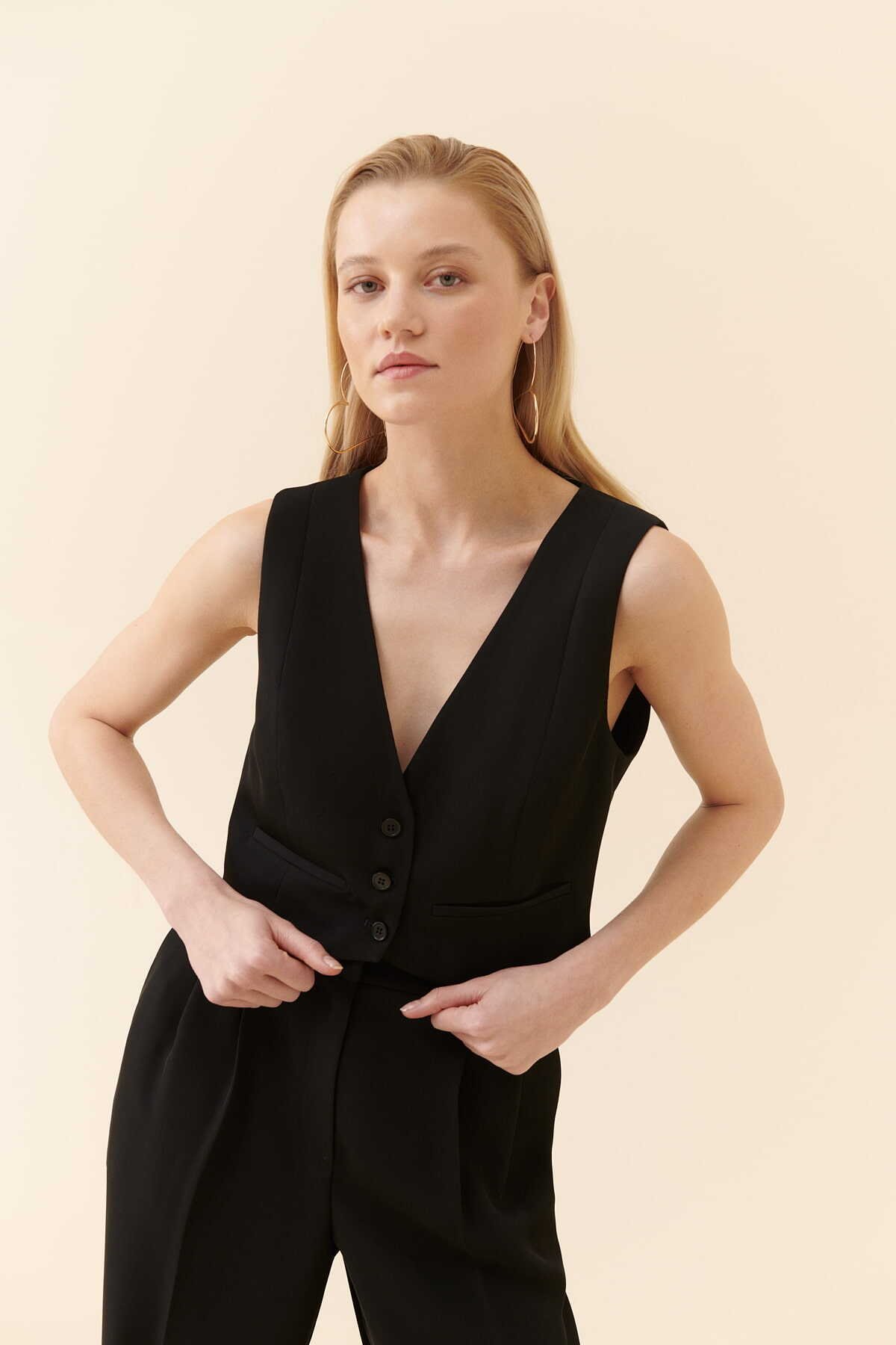 Önü Fermuarlı Trok Detaylı Yelek Siyah