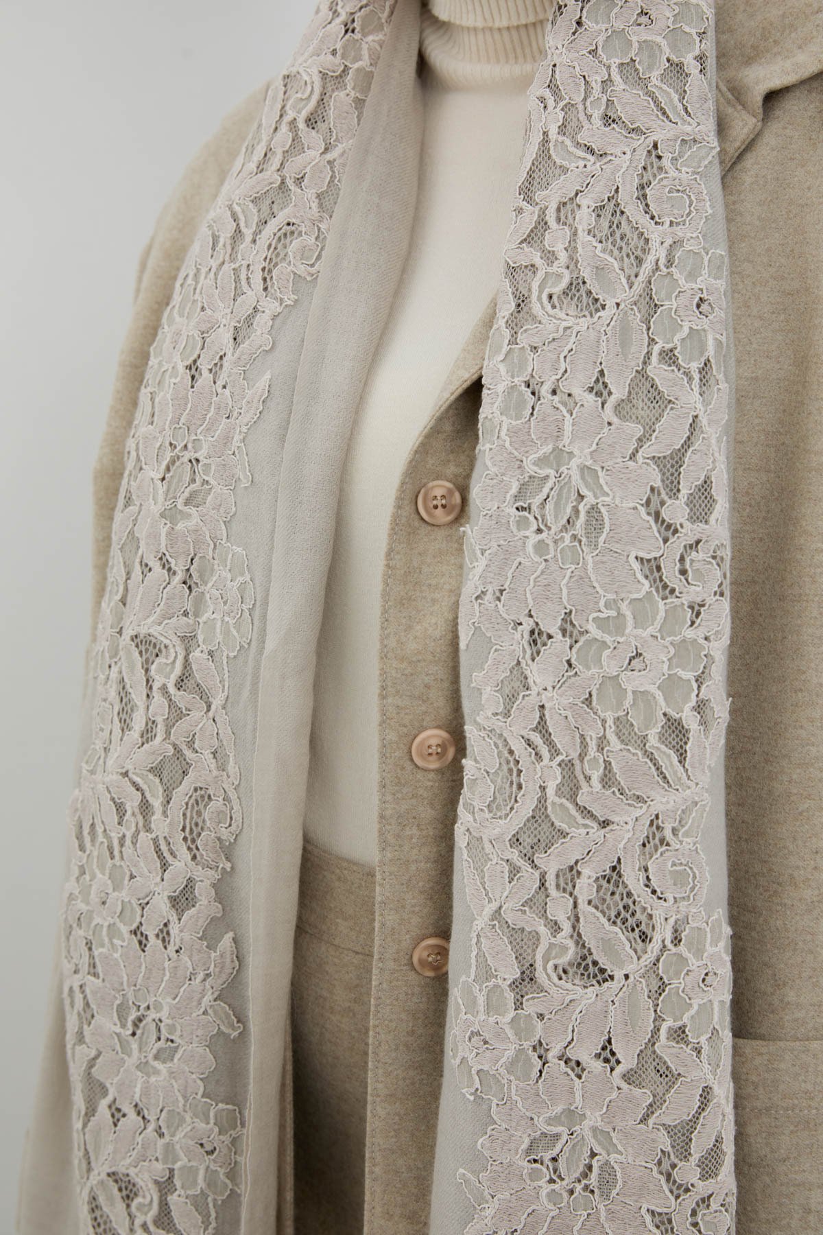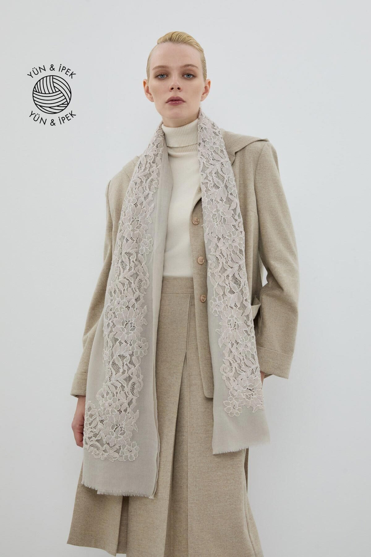 Dantel: %100 Polyester ,Ana Kumaş: %15 İpek ,Ana Kumaş: %85 Yün ,