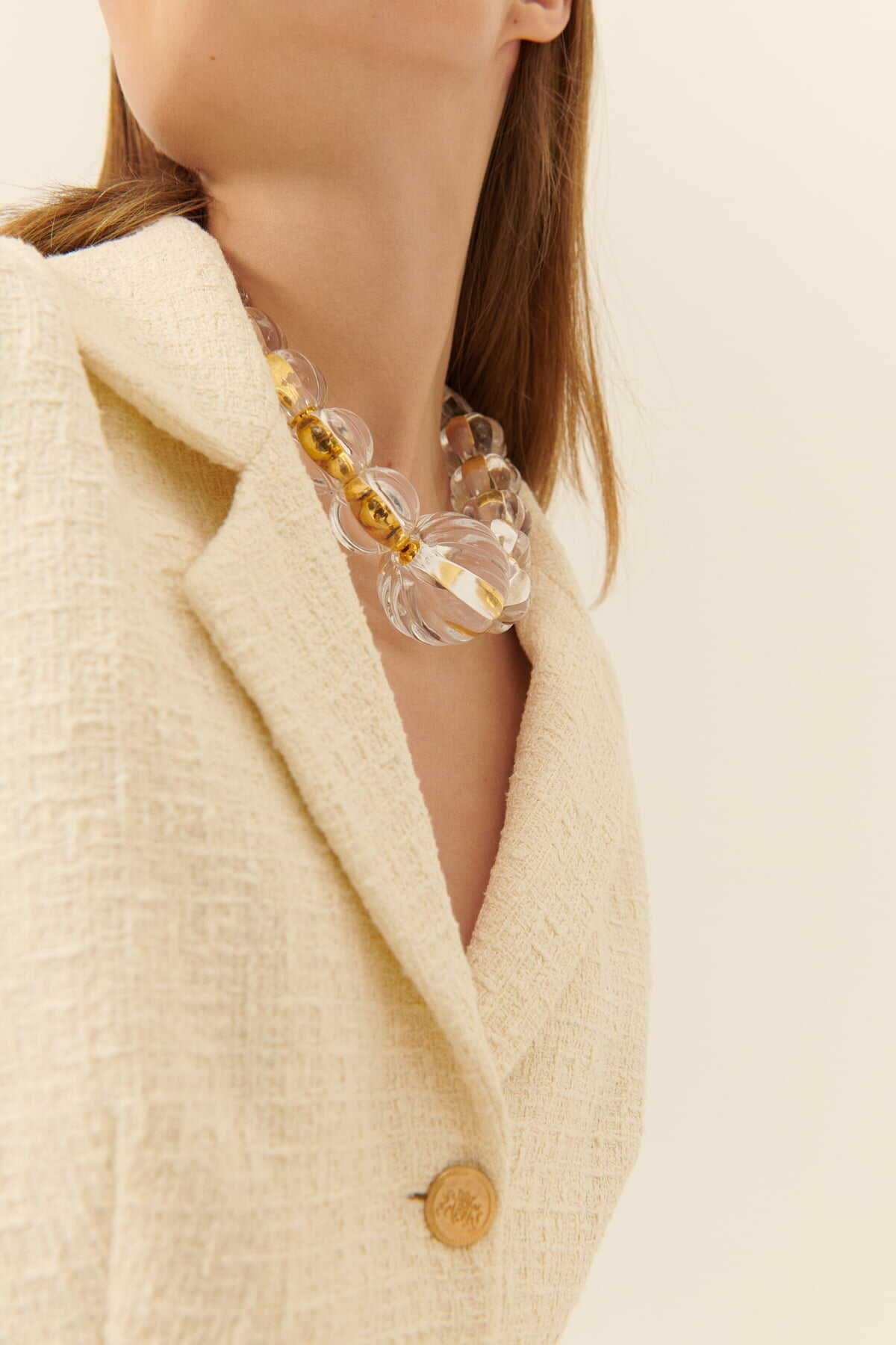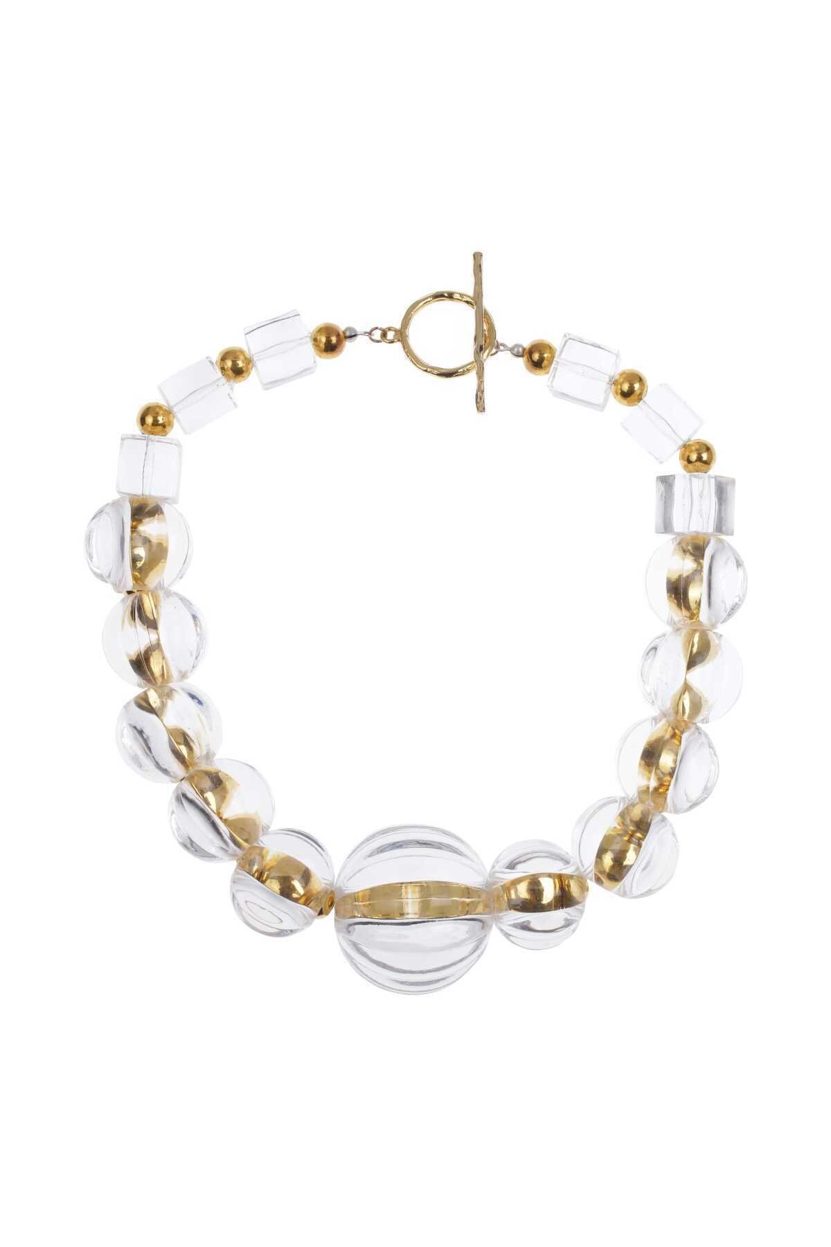 İri Transparan Boncuklu Detaylı Kolye Standart Renk