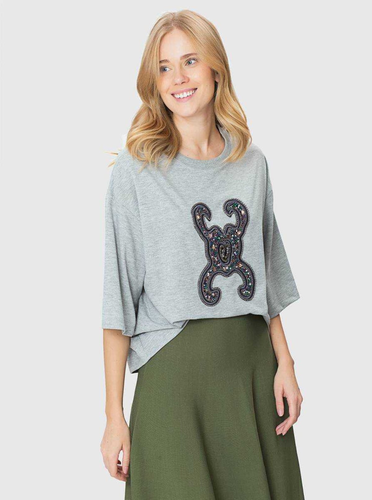 İşlemeli Oversize Sweatshirt Gri