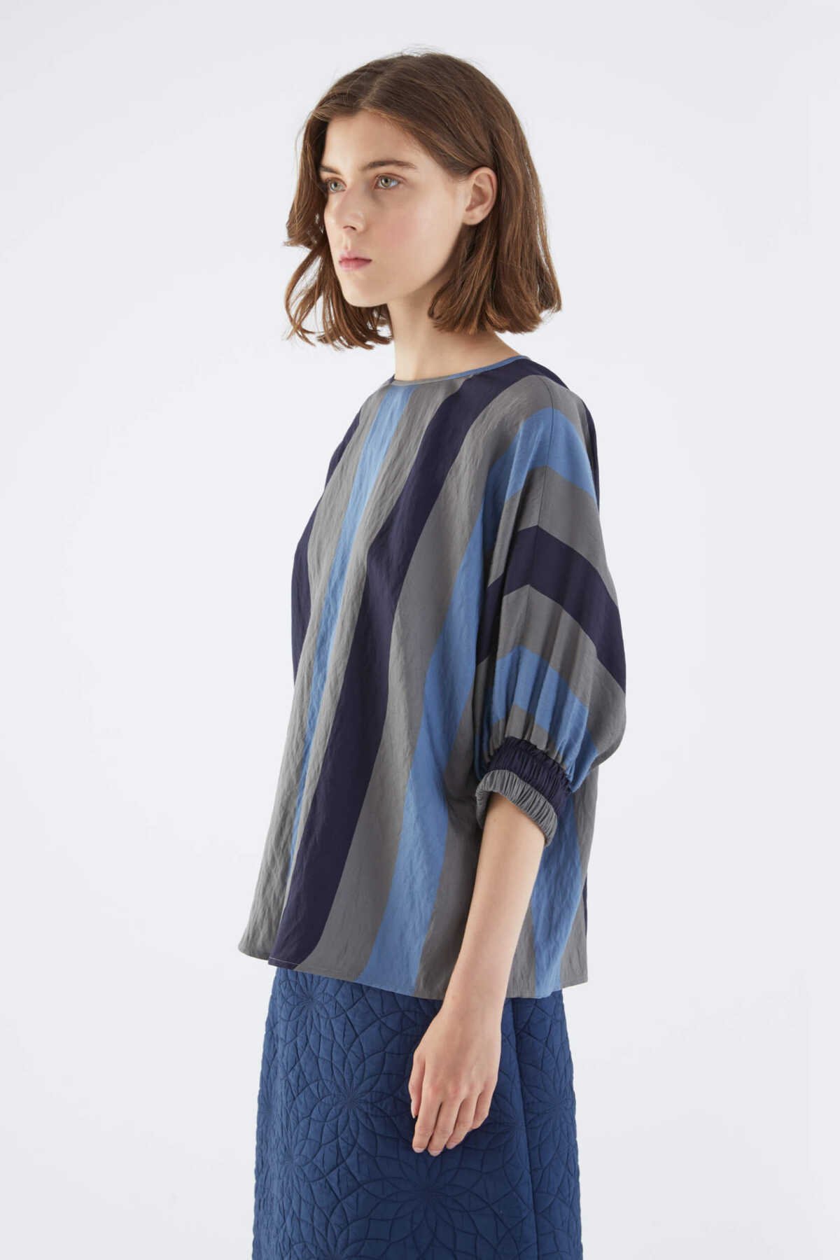 Bisiklet Yaka Pelerin Kol Detaylı Bluz Ekru