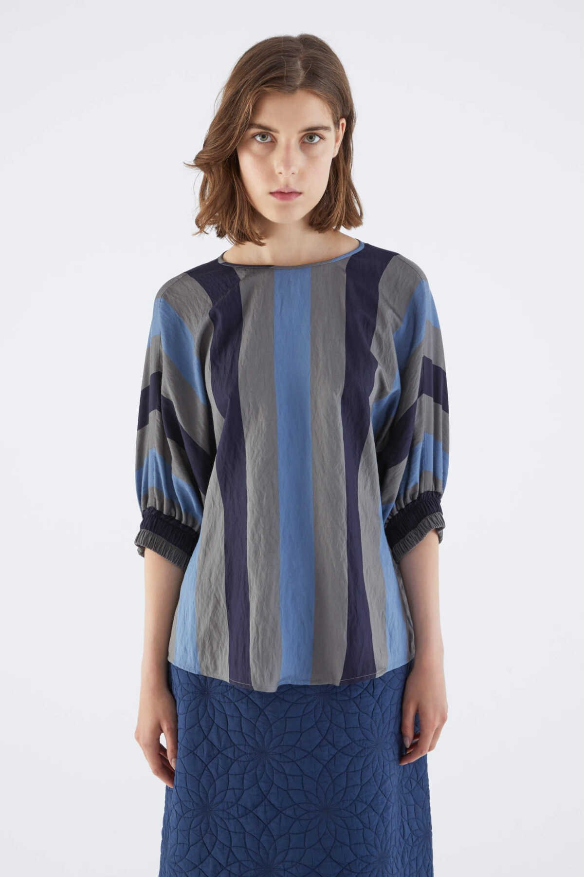 Sırtı Fiyonklu Çizgili Bluz Standart Renk