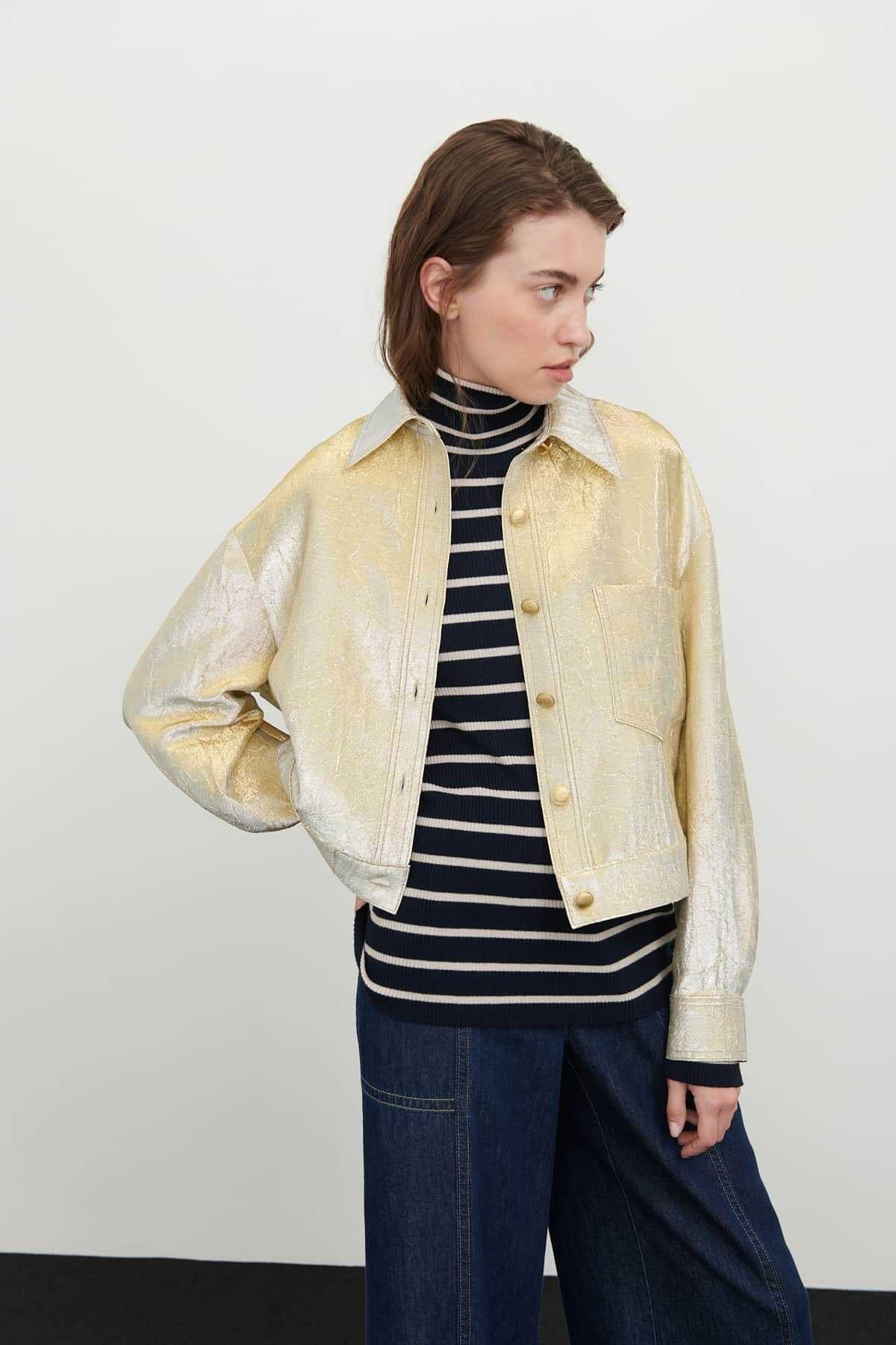 %100 Deri Fermuar ve Çıtçıt Detaylı Mont Taba