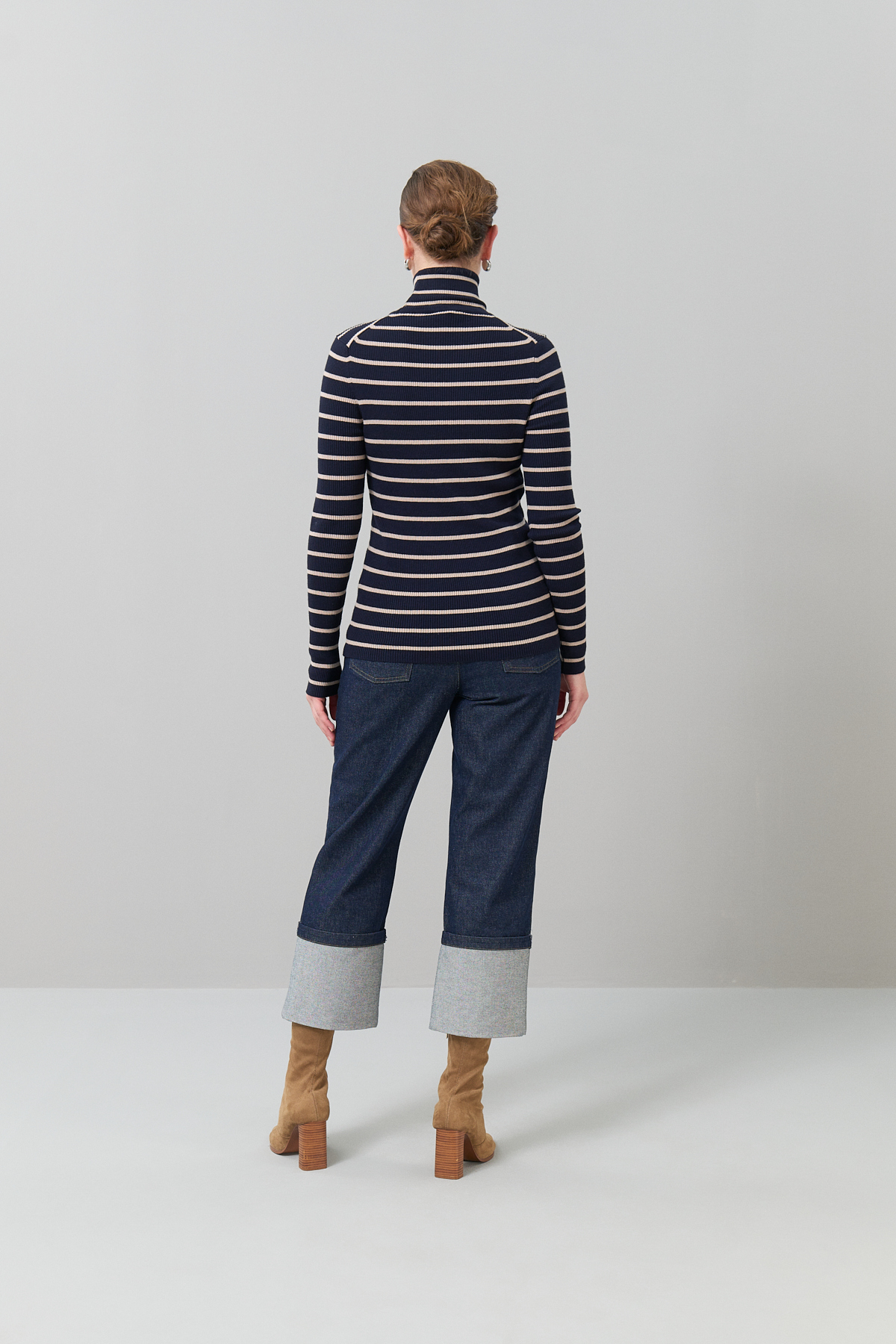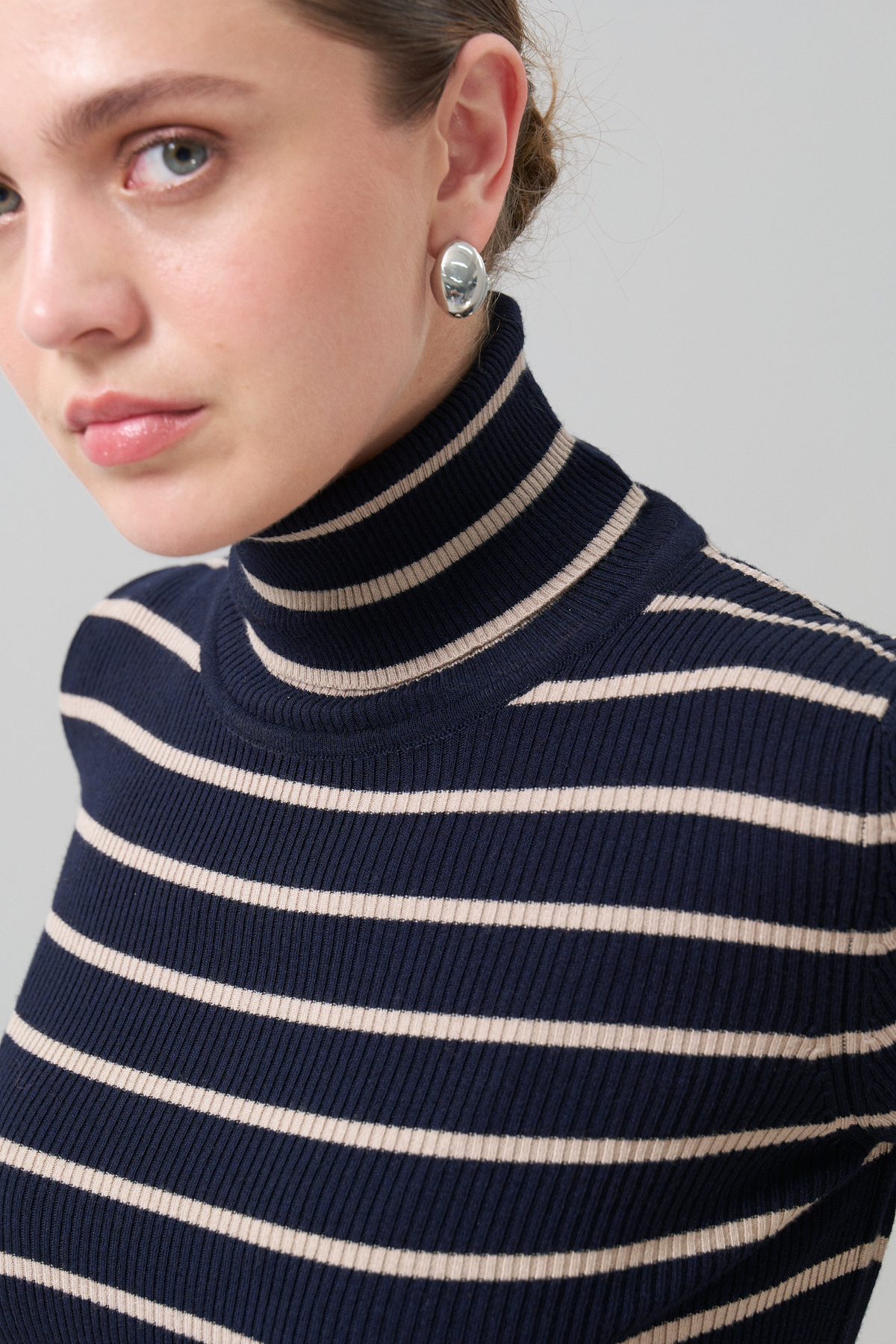 Balıkçı Yaka Çizğili Yün Triko Lacivert - Bej