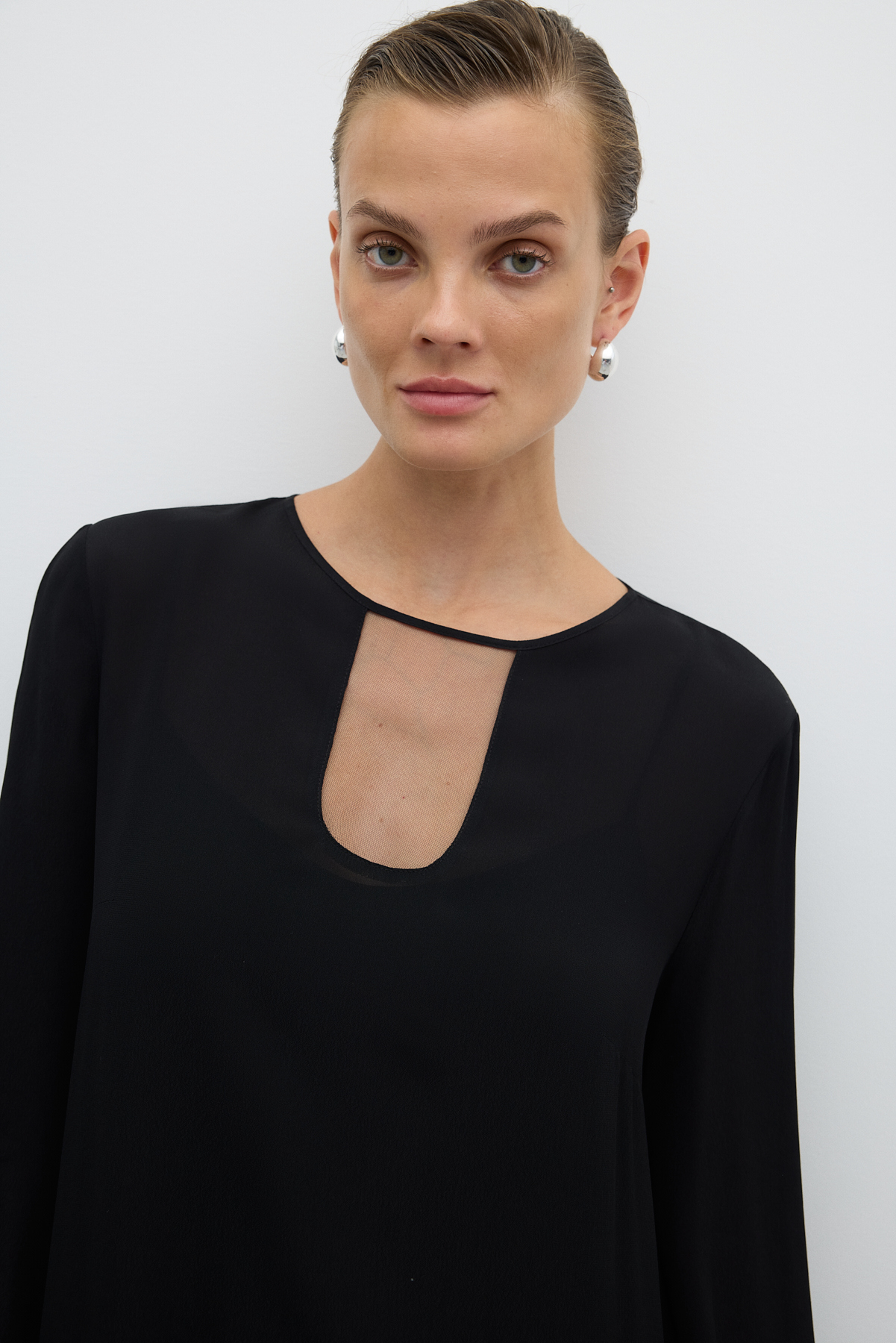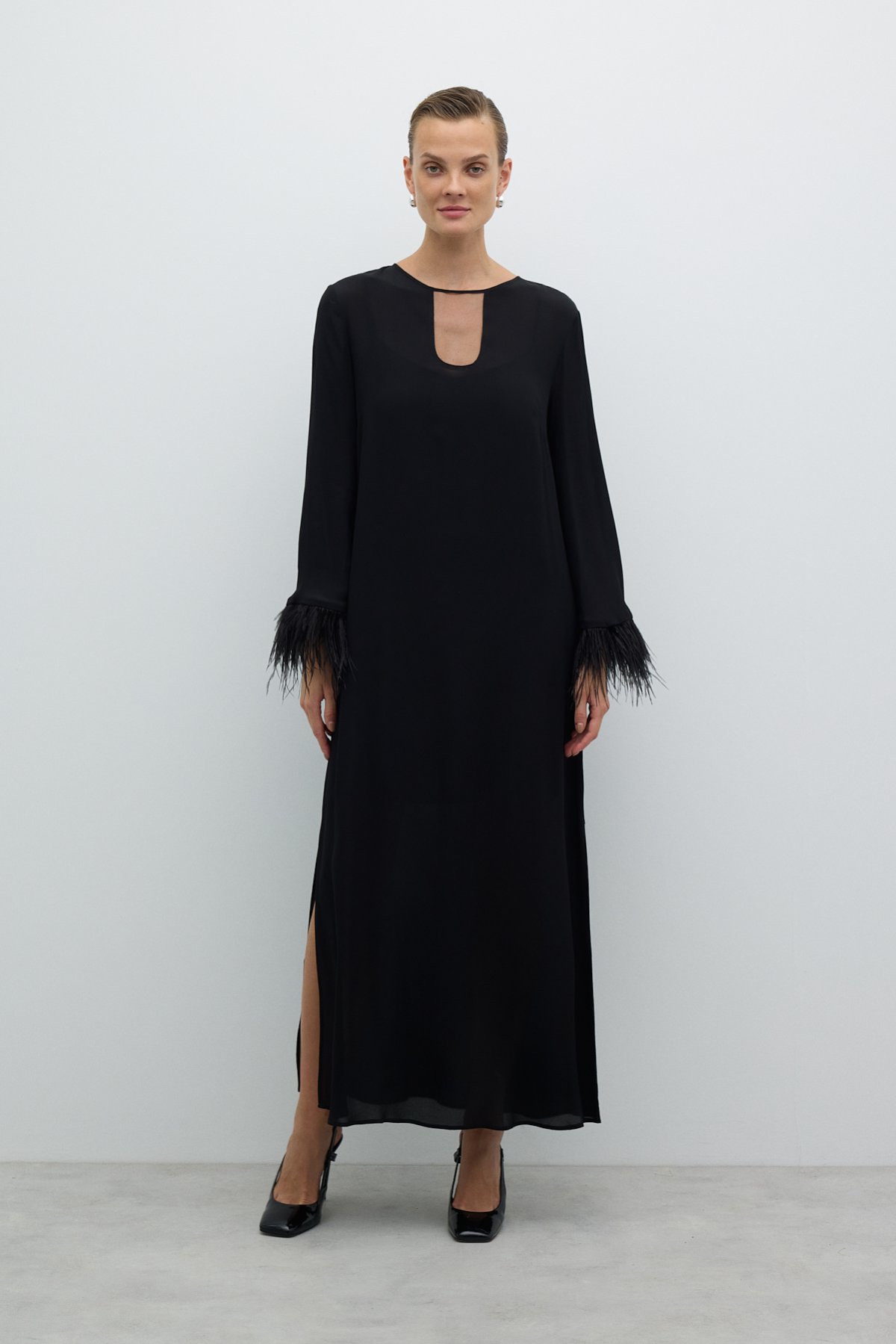 Yırtmaçlı Kolları Otriş Detaylı Elbise Siyah - 1