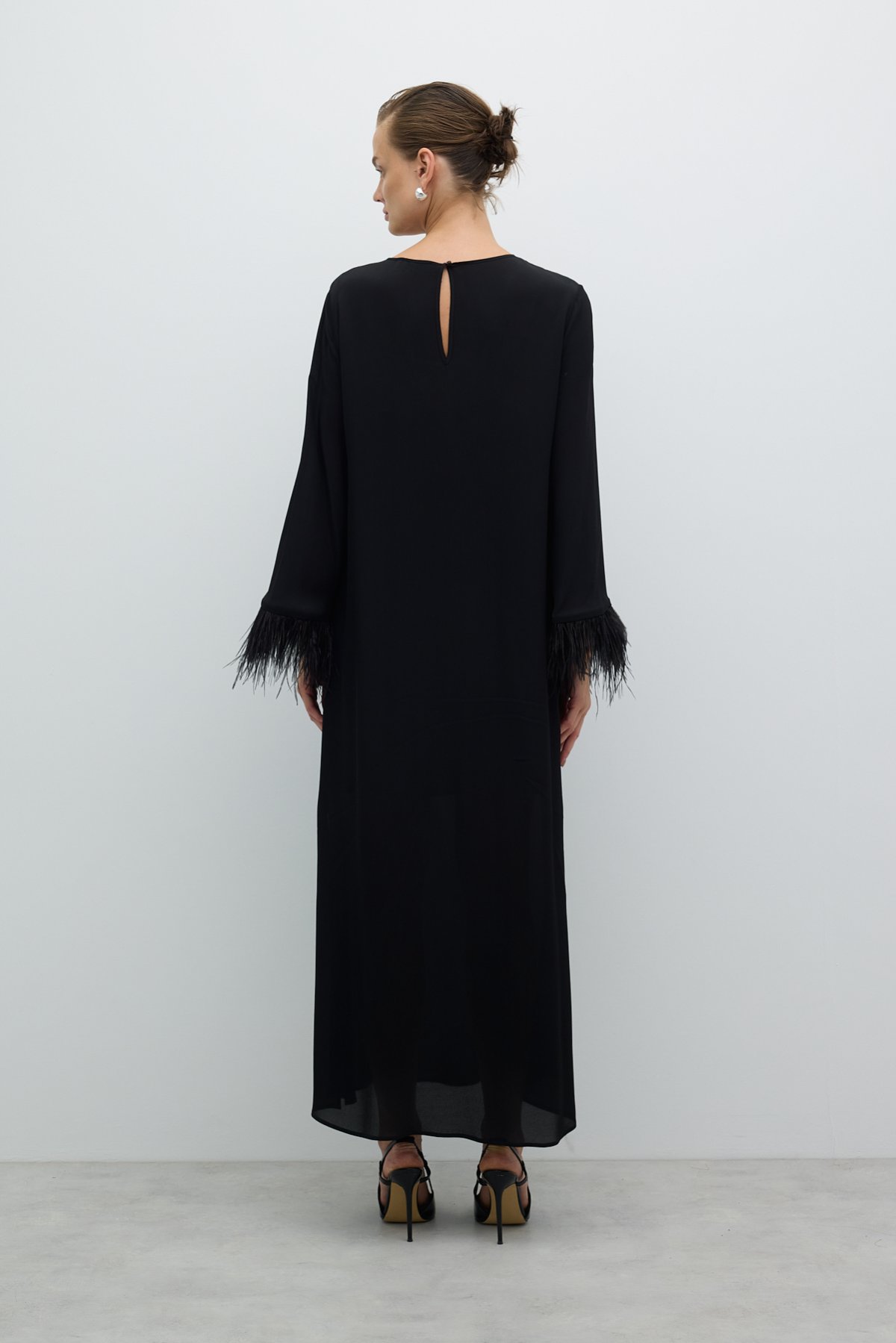 Yırtmaçlı Kolları Otriş Detaylı Elbise Siyah - 5