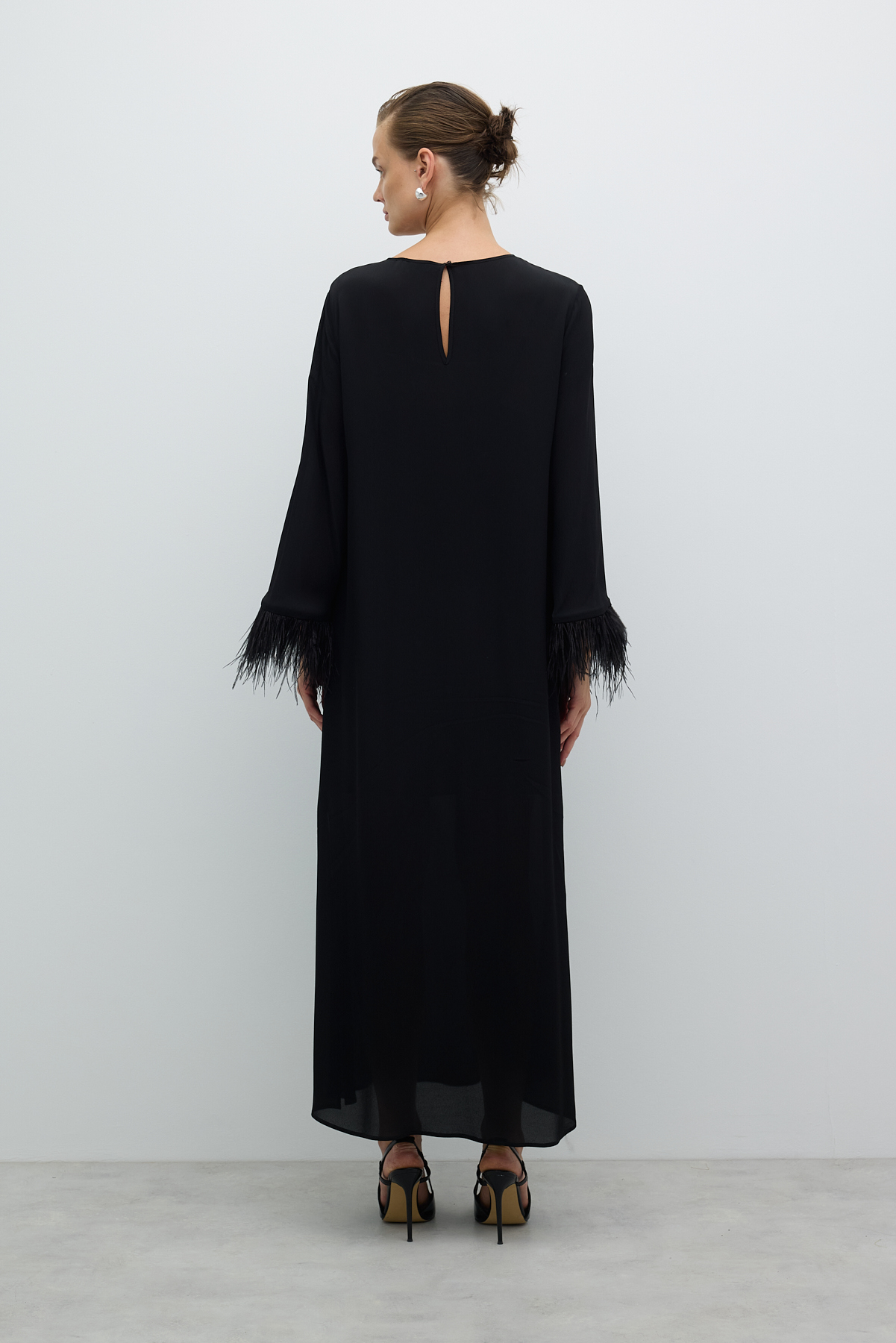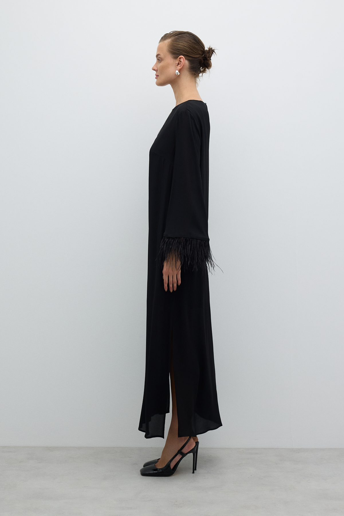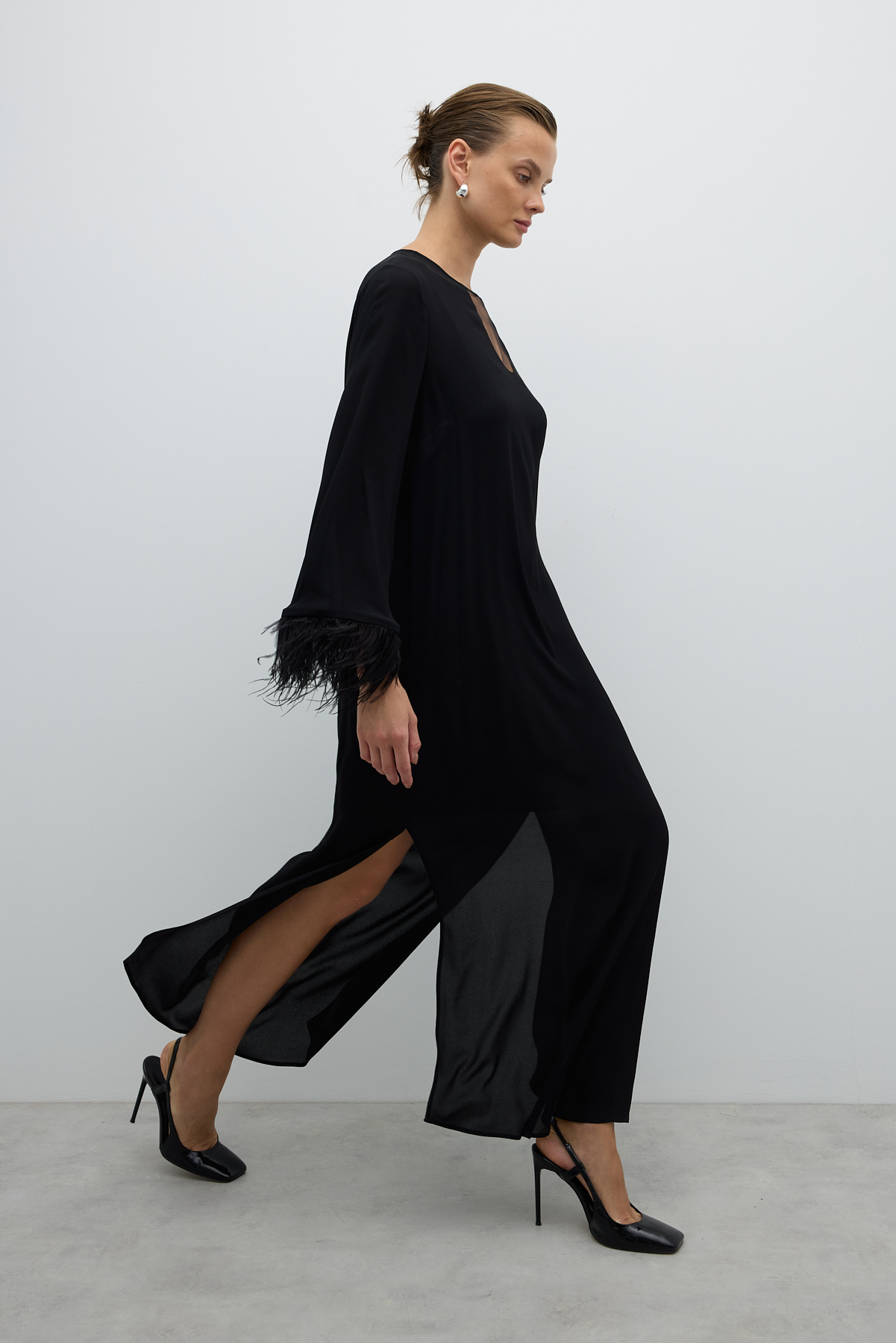 Yırtmaçlı Kolları Otriş Detaylı Elbise Siyah - 4