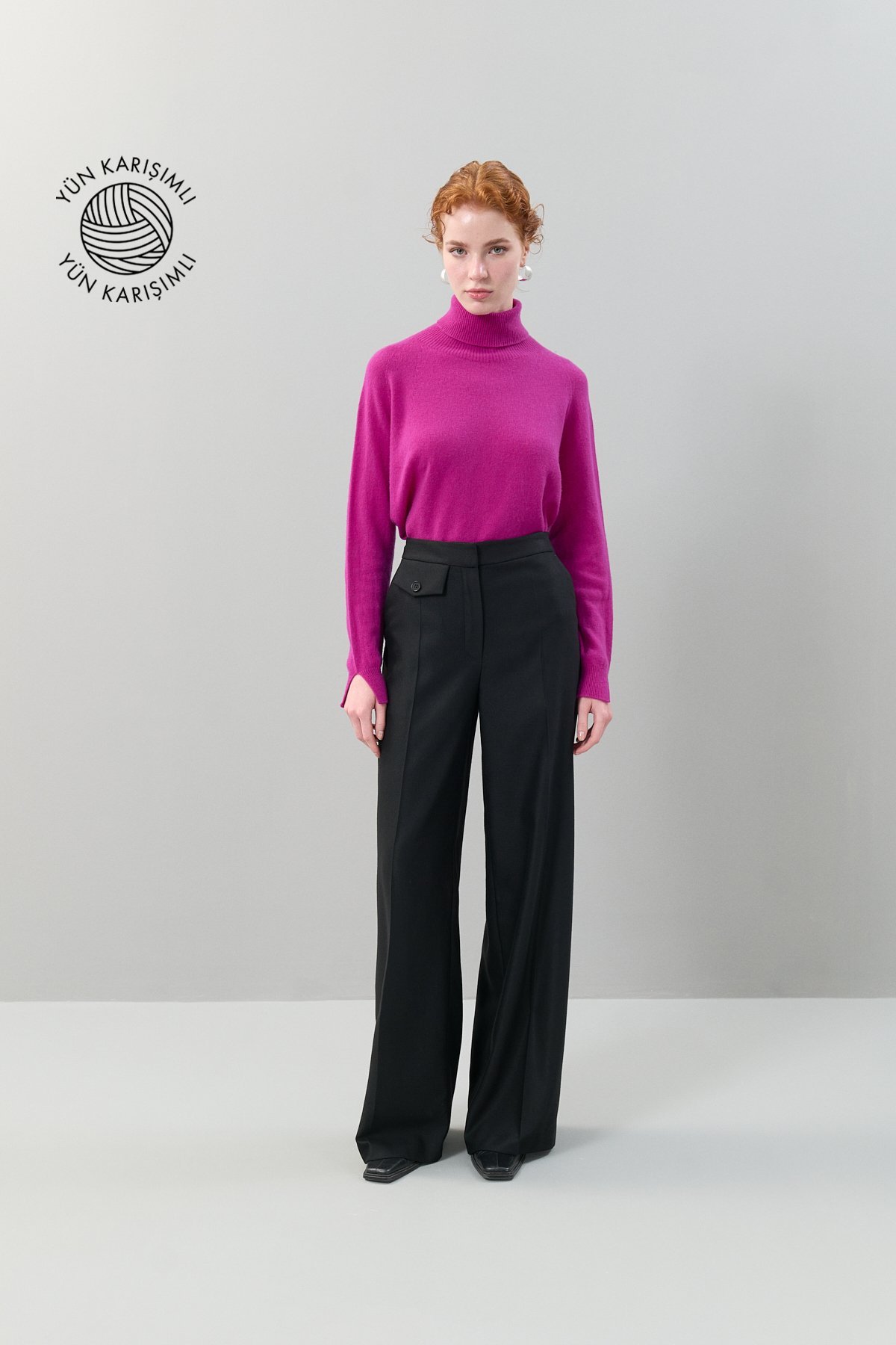 Yün Karışımlı Düz Paça Pantolon Lacivert