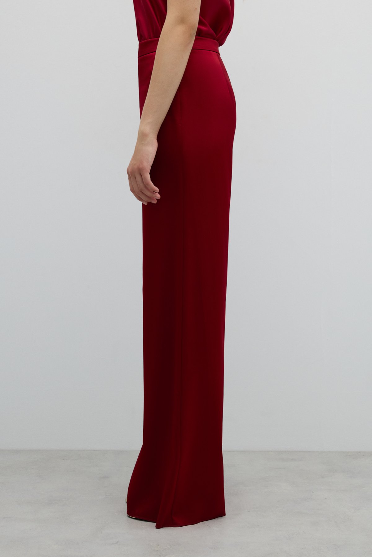 Nakış Detaylı Tek Pilili Havuç Paça Pantolon Bordo