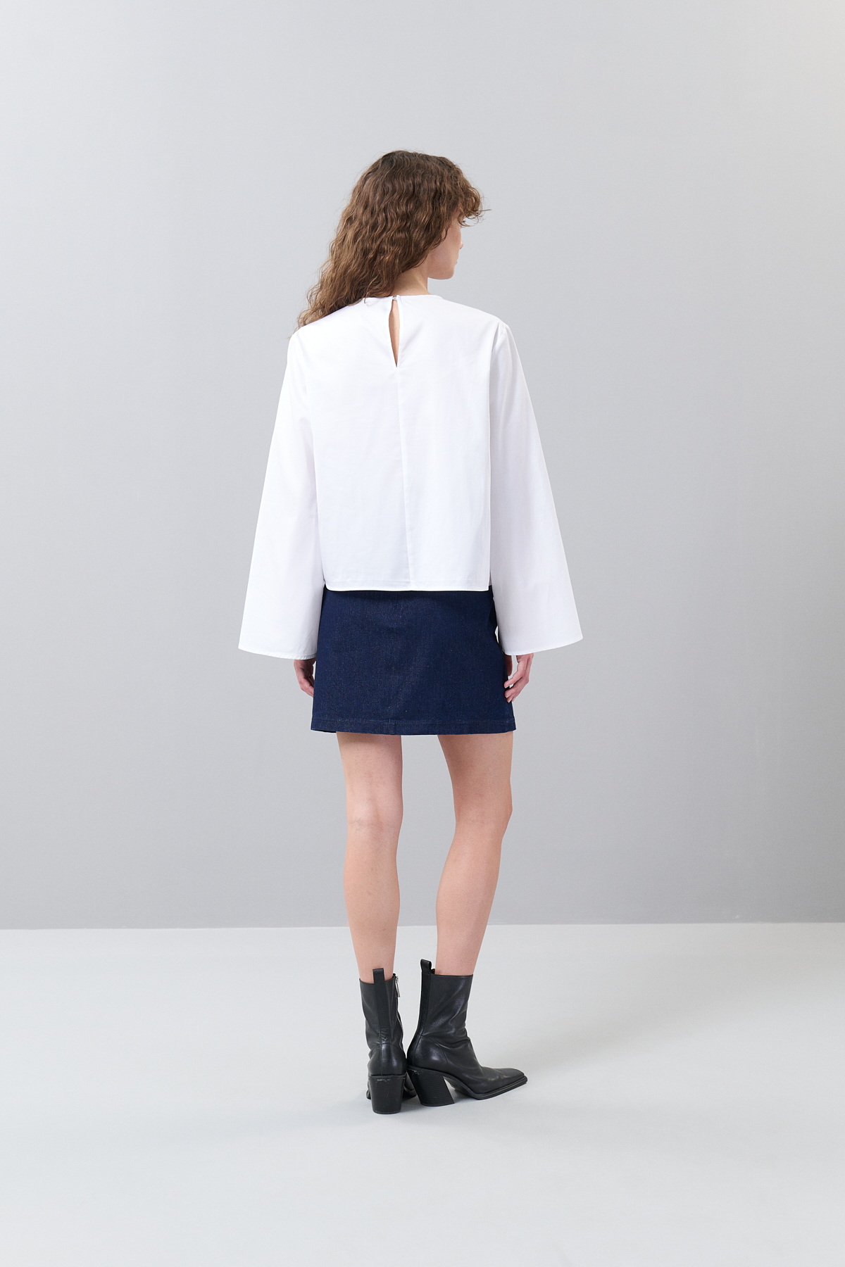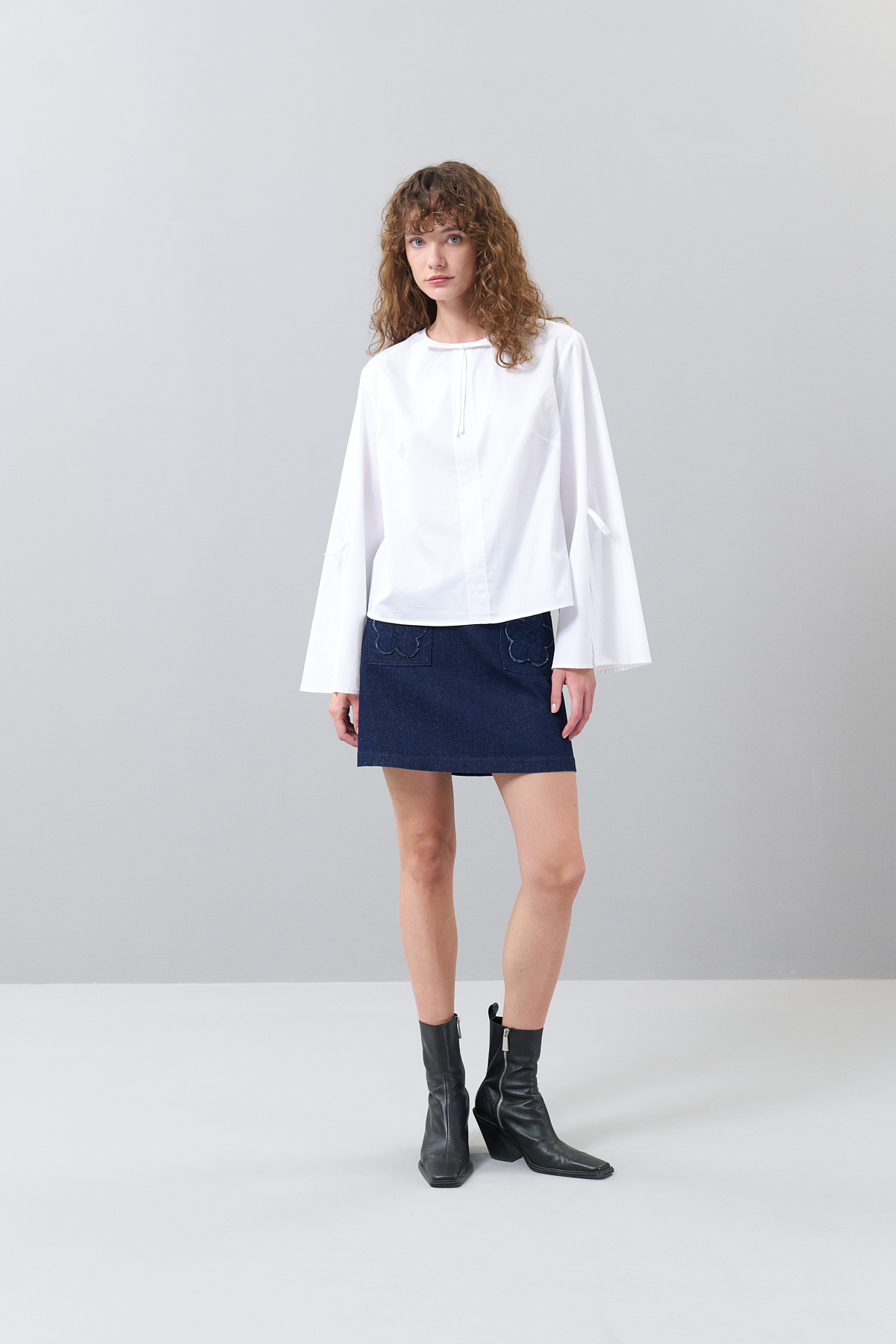 Yırtmaçlı İspanyol Kol Poplin Bluz Beyaz