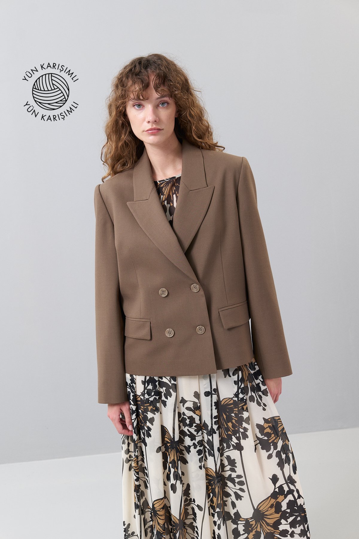 Yün Kruvaze Ceket Açık Kahve