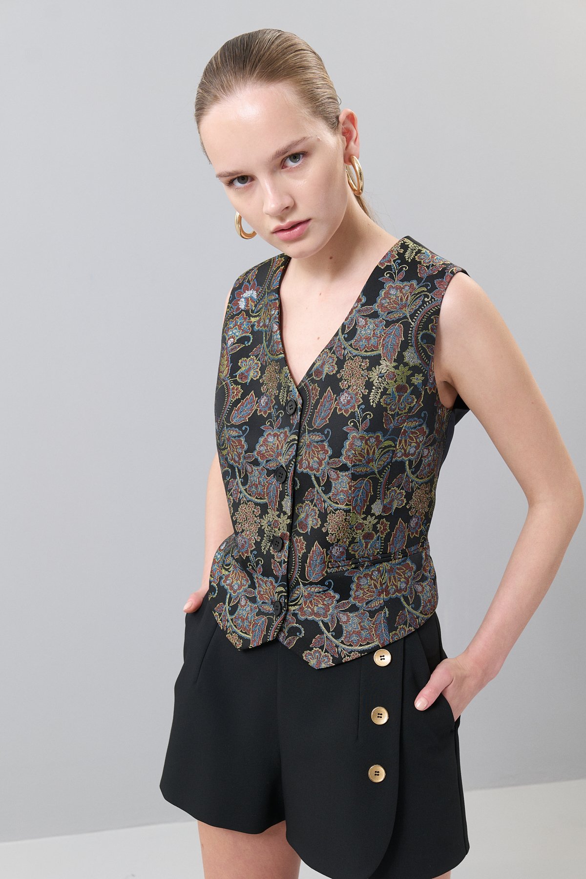 KUMAŞ İÇERİĞİ: Ana Kumaş: %74 Polyester ,Astar 1: %100 Polyester ,Ana Kumaş: %20 Viskon ,Ana Kumaş: %2 Polyamid ,Ana Kumaş: %4 Metalize , YIKAMA TALİMATI: Yıkama Yapılmaz ÜTÜLEME TALİMATI: Orta Isıda Ütüleme 150C KURUTMA TALİMATI: Tamburlu Kurutma Yapılmaz MODEL ÖLÇÜLERİ: