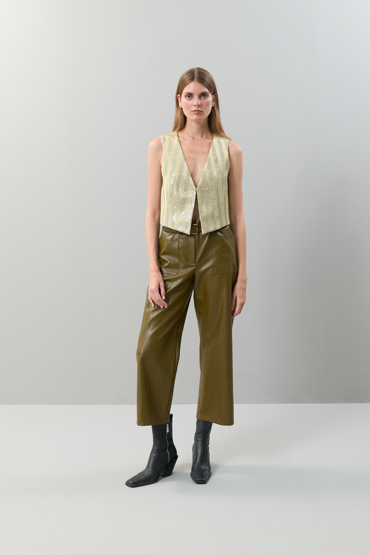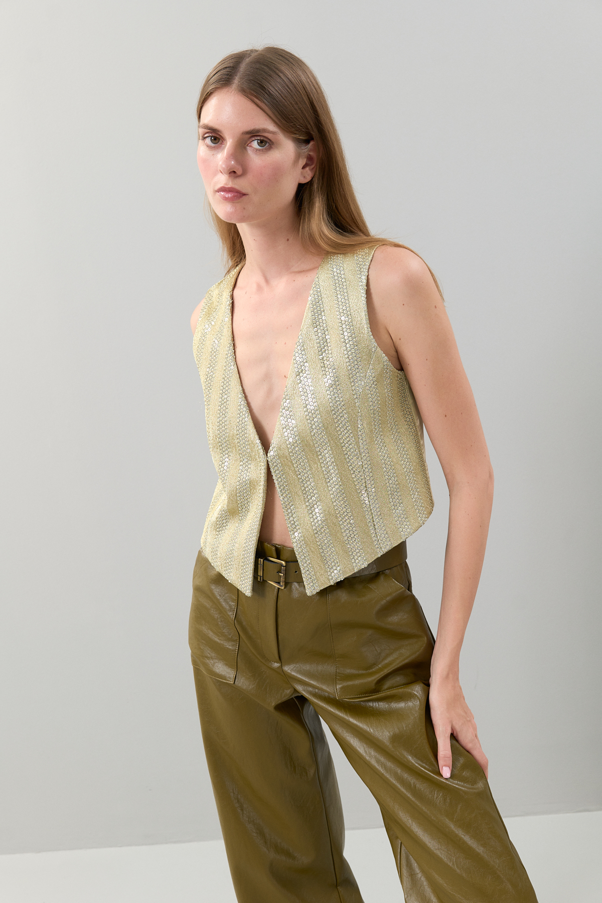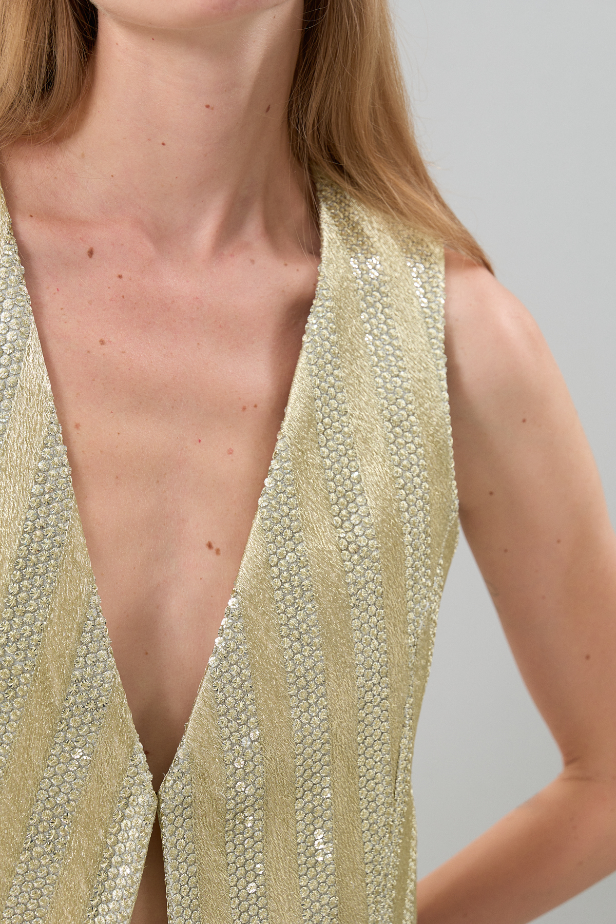 Bele Oturan Kare Yaka Payetli Yelek Gold