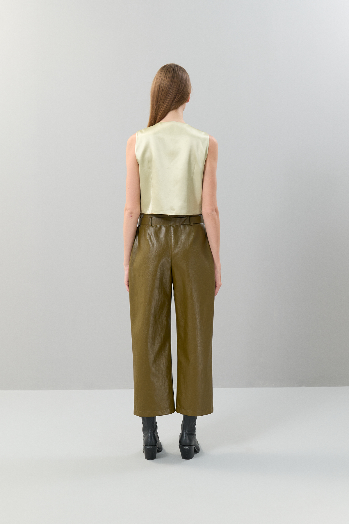 Çıkarılabilir Kemer ve Çıtçıt Detaylı Kruvaze Yelek Yeşil
