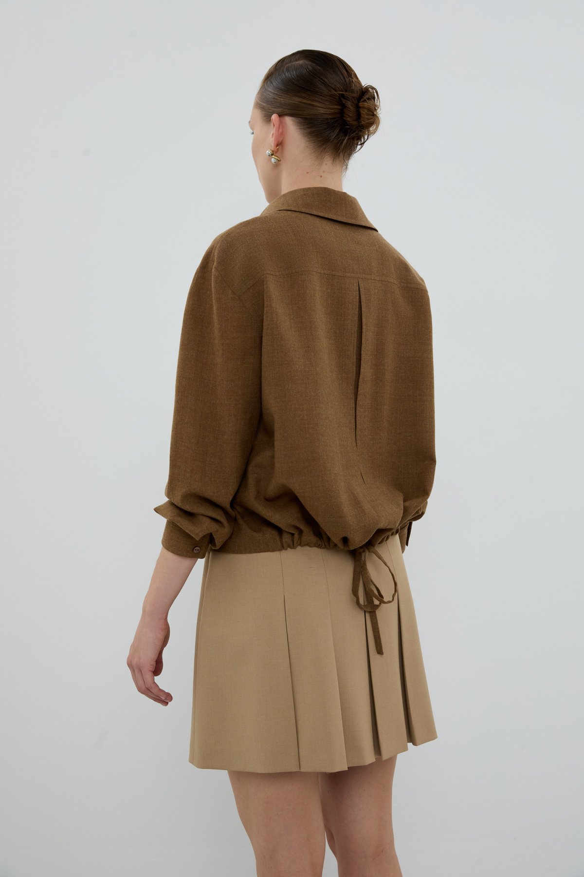 %100 Yün Süs Cep Kapaklı Gömlek Kahve - 2